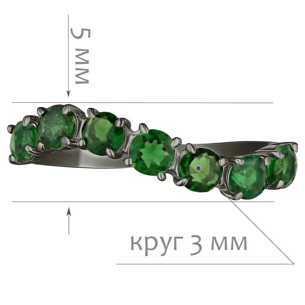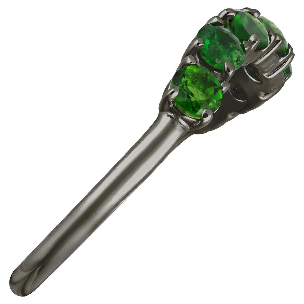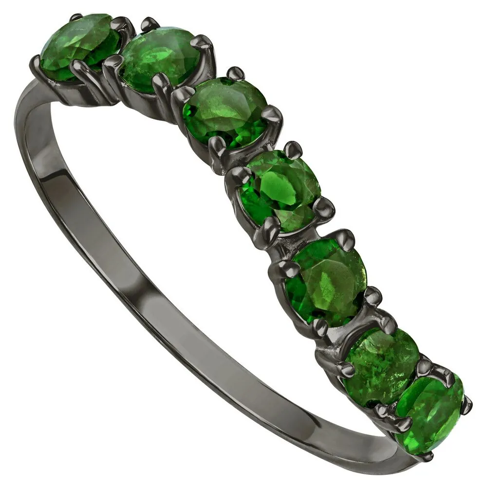 Серебряное кольцо с натуральным хромдиопсидом - коллекция Волна / Черный Родий. Средний вес украшения с камнями 1.27 гр. Месторождение: Хромдиопсид (Якутия, Россия). Ювелирные вставки: Хромдиопсид (Натуральный) круг 3 мм., средний вес: 0.1 карат. Все изделия собственного производства и имеют гарантию 12 месяцев, к каждому изделию прилагается паспорт. Арт. 8730BR