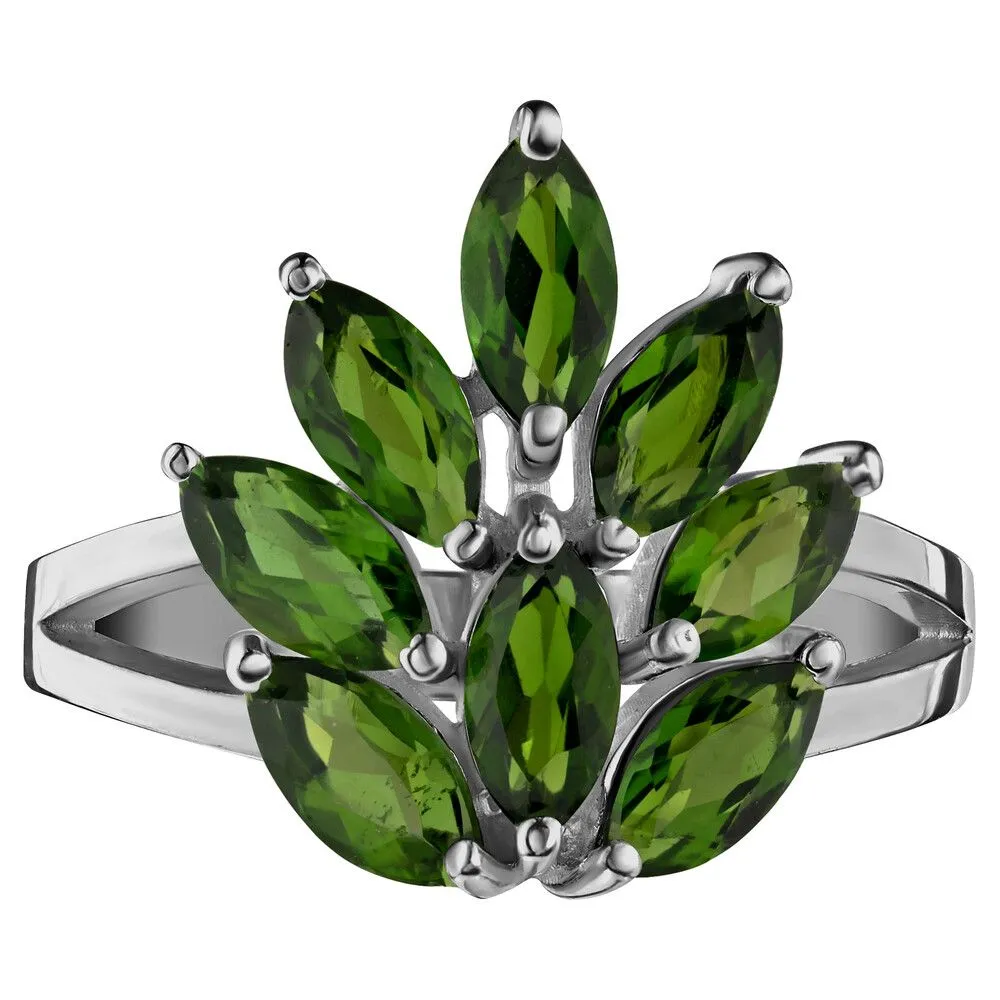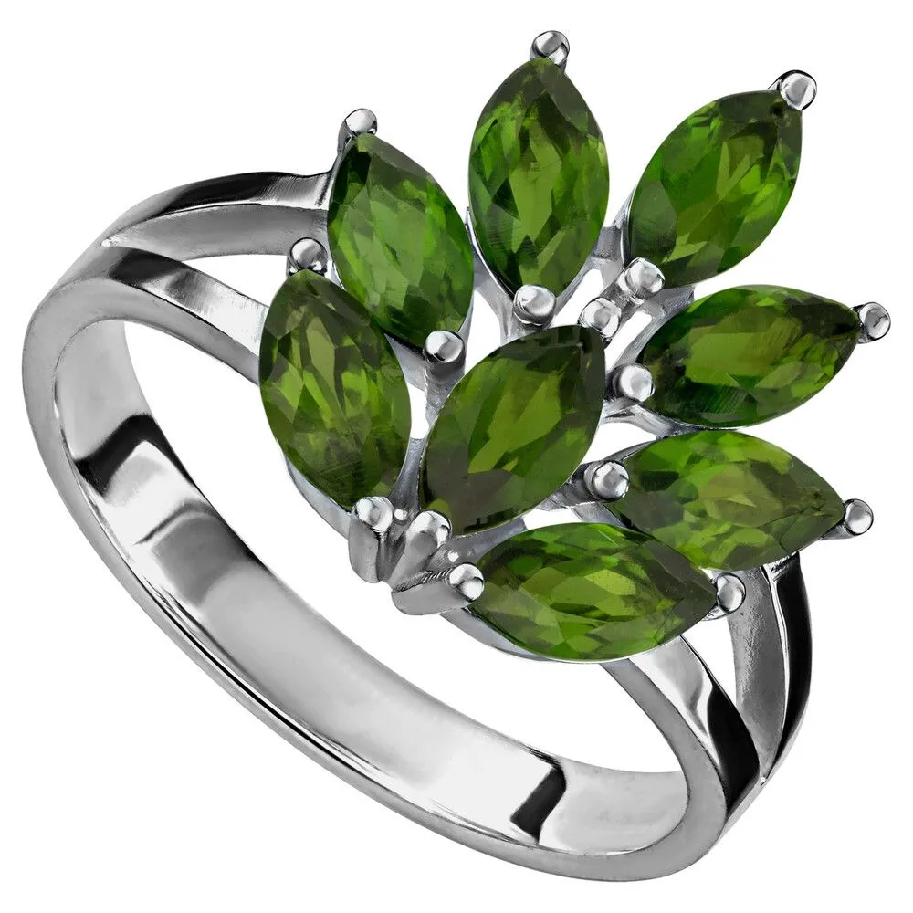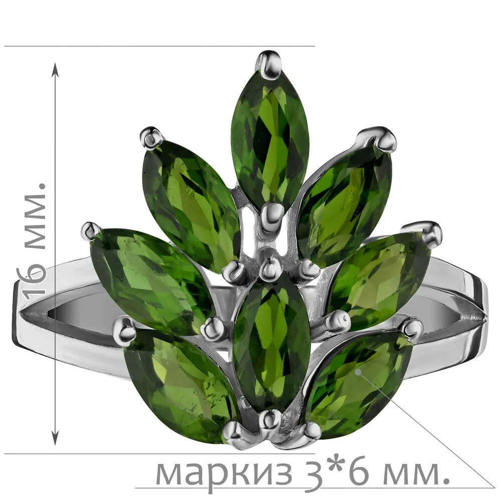 Серебряное кольцо с натуральным хромдиопсидом - коллекция Искра / Палладий. Средний вес украшения с камнями 3.06 гр. Месторождение: Хромдиопсид (Якутия, Россия). Ювелирные вставки: Хромдиопсид (Натуральный) маркиз 3*6 мм., средний вес: 0.27 карат. Все изделия собственного производства и имеют гарантию 12 месяцев, к каждому изделию прилагается паспорт. Арт. 8905PD