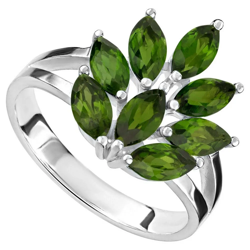 Серебряное кольцо с натуральным хромдиопсидом - коллекция Искра / Белый Родий. Средний вес украшения с камнями 3.06 гр. Месторождение: Хромдиопсид (Якутия, Россия). Ювелирные вставки: Хромдиопсид (Натуральный) маркиз 3*6 мм., средний вес: 0.27 карат. Все изделия собственного производства и имеют гарантию 12 месяцев, к каждому изделию прилагается паспорт. Арт. 8905WR