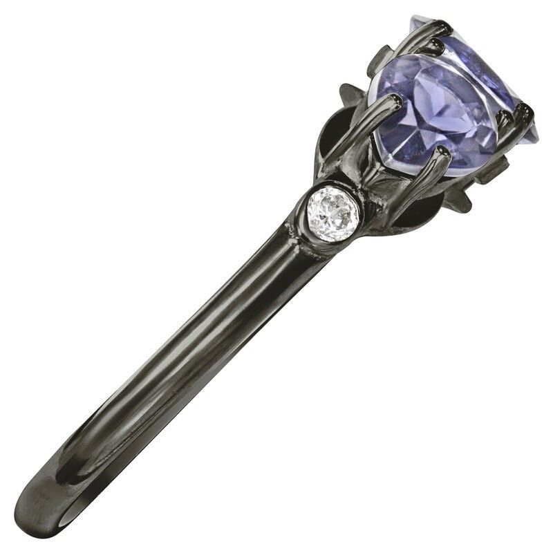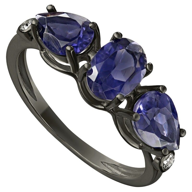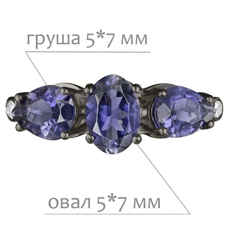 Серебряное кольцо с натуральным иолитом - коллекция Сансара / покрытие Черный Родий.Средний вес украшения с камнями 2.31 гр.Месторождение(я): Иолит (Бирма).Ювелирные вставки:Иолит (Натуральный) овал 5*7 мм., средний вес: 0.63 карат.Иолит (Натуральный) груша 5*7 мм., средний вес: 0.53 карат.Белый Нанокристалл круг 2 мм., средний вес: 0.06 карат.Все изделия собственного производства и имеют гарантию 12 месяцев. Арт. 8641BR. Иолит – это камень, который называют разными именами: водяной сапфир, синий нефрит, рысий сапфир. Полудрагоценный камень очаровывал переливчатыми оттенками синего и фиолетового. Ещё викинги считали, что он помогает найти путь. Полезен он и для здоровья, например, при мигренях. А главное, дает своему хозяину толчок к самореализации.