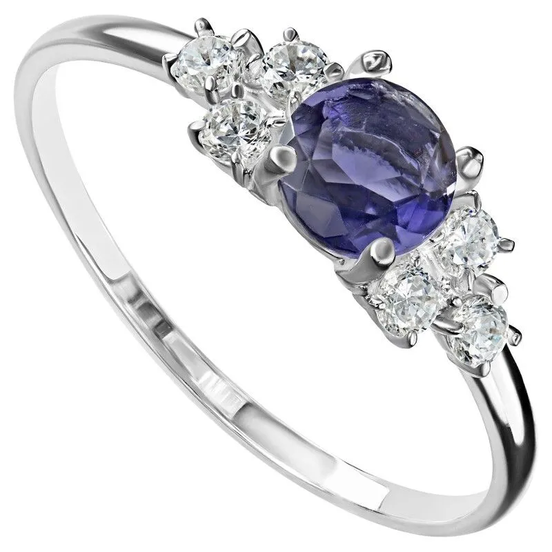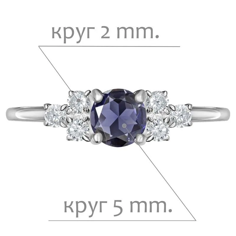 Серебряное кольцо с натуральным иолитом - коллекция Нова / Без покрытия.Средний вес украшения с камнями 1.27 гр.Месторождение(я): Иолит (Бирма).Ювелирные вставки:Иолит (Натуральный) круг 5 мм., средний вес: 0.39 карат.Белый Нанокристалл круг 2 мм., средний вес: 0.06 карат.Все изделия собственного производства и имеют гарантию 12 месяцев. Арт. 8658NP. Иолит – это камень, который называют разными именами: водяной сапфир, синий нефрит, рысий сапфир. Полудрагоценный камень очаровывал переливчатыми оттенками синего и фиолетового. Ещё викинги считали, что он помогает найти путь. Полезен он и для здоровья, например, при мигренях. А главное, дает своему хозяину толчок к самореализации.