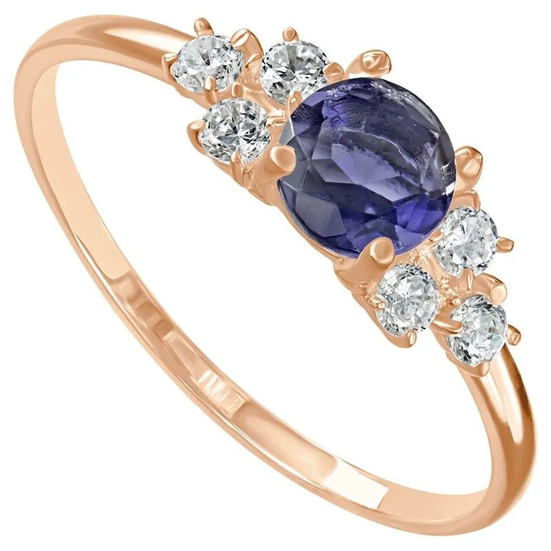 Серебряное кольцо с натуральным иолитом - коллекция Нова / покрытие Красное Золото.Средний вес украшения с камнями 1.26 гр.Месторождение(я): Иолит (Бирма).Ювелирные вставки:Иолит (Натуральный) круг 5 мм., средний вес: 0.39 карат.Белый Нанокристалл круг 2 мм., средний вес: 0.06 карат.Все изделия собственного производства и имеют гарантию 12 месяцев. Арт. 8658RG. Иолит – это камень, который называют разными именами: водяной сапфир, синий нефрит, рысий сапфир. Полудрагоценный камень очаровывал переливчатыми оттенками синего и фиолетового. Ещё викинги считали, что он помогает найти путь. Полезен он и для здоровья, например, при мигренях. А главное, дает своему хозяину толчок к самореализации.