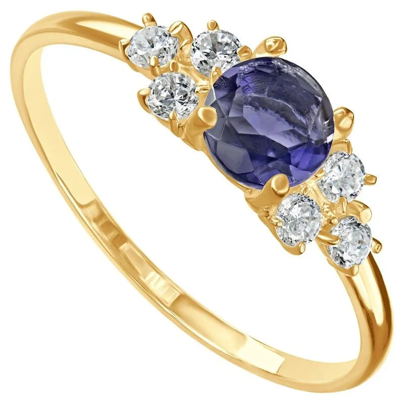 Серебряное кольцо с натуральным иолитом - коллекция Нова / покрытие Желтое Золото.Средний вес украшения с камнями 1.28 гр.Месторождение(я): Иолит (Бирма).Ювелирные вставки:Иолит (Натуральный) круг 5 мм., средний вес: 0.39 карат.Белый Нанокристалл круг 2 мм., средний вес: 0.06 карат.Все изделия собственного производства и имеют гарантию 12 месяцев. Арт. 8658YG. Иолит – это камень, который называют разными именами: водяной сапфир, синий нефрит, рысий сапфир. Полудрагоценный камень очаровывал переливчатыми оттенками синего и фиолетового. Ещё викинги считали, что он помогает найти путь. Полезен он и для здоровья, например, при мигренях. А главное, дает своему хозяину толчок к самореализации.