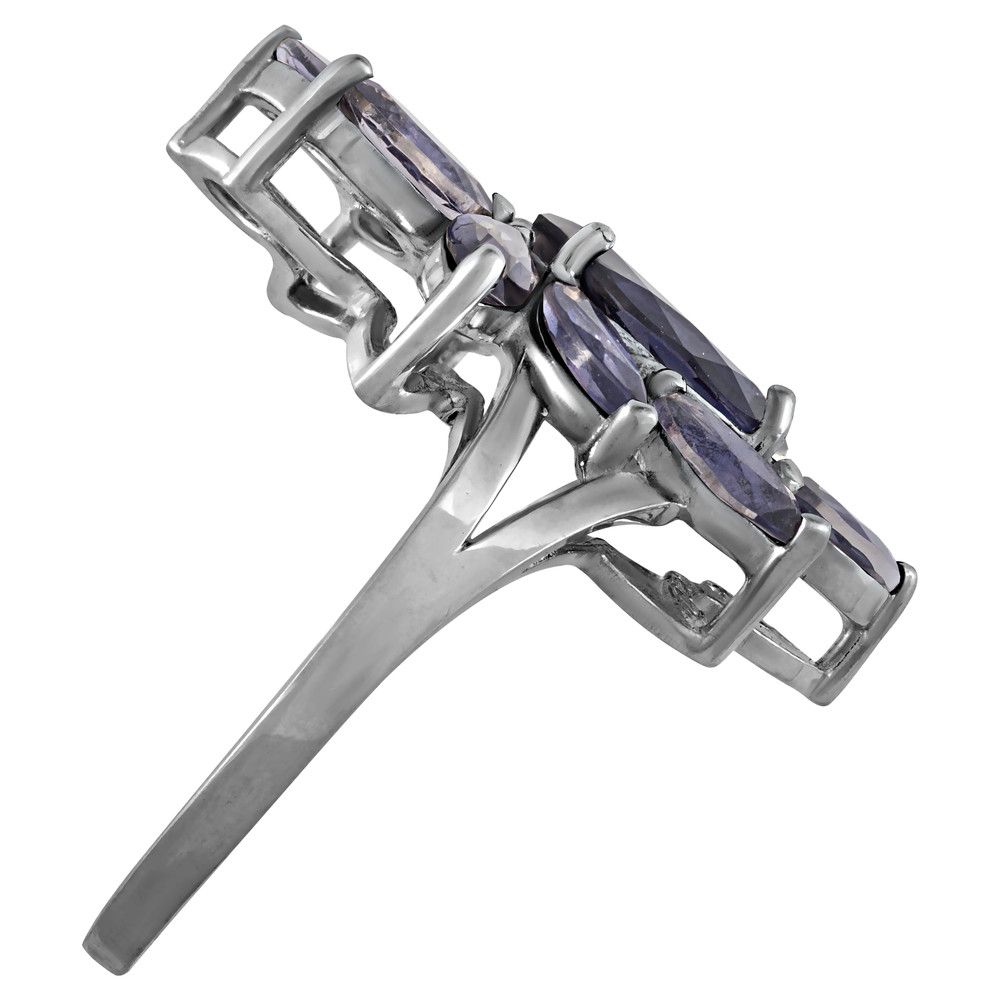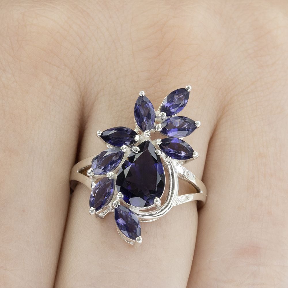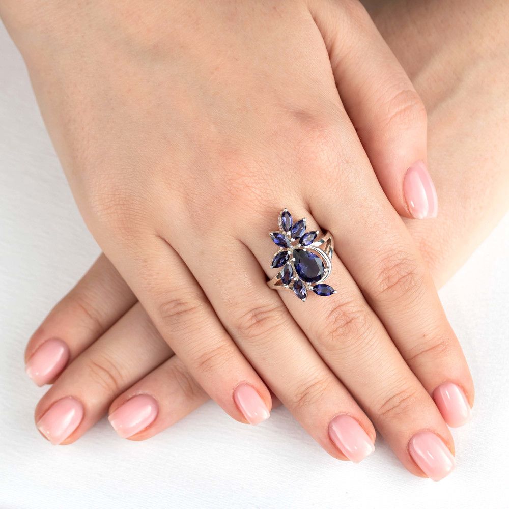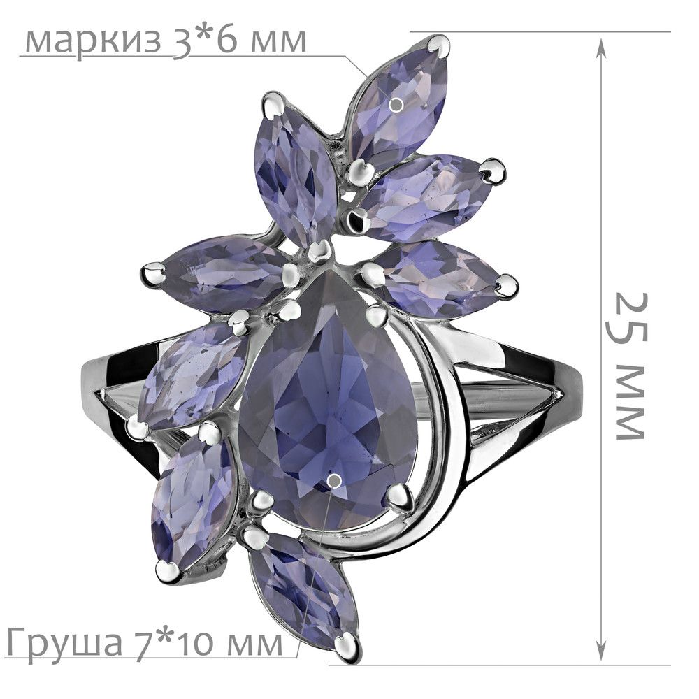 Серебряное кольцо "Элегия" с натуральным иолитом, покрытие Палладий. Средний вес украшения с камнями 3,43 гр. Месторождение(я) камней: Иолит (Бирма). Иолит (Натуральный) груша: 7*10 мм., средний вес: 1,60 карат. Иолит (Натуральный) маркиз: 3*6 мм., средний вес: 0,22 карат. Размер лицевой части: 15*23 мм. Все изделия собственного производства и имеют гарантию 12 месяцев. Арт. 6611PD. Иолит – это камень, который называют разными именами: водяной сапфир, синий нефрит, рысий сапфир. Полудрагоценный камень очаровывал переливчатыми оттенками синего и фиолетового. Ещё викинги считали, что он помогает найти путь. Полезен он и для здоровья, например, при мигренях. А главное, дает своему хозяину толчок к самореализации.