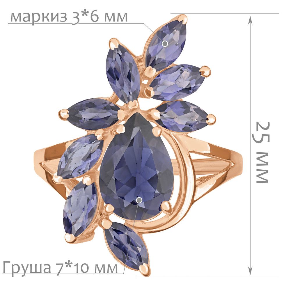 Серебряное кольцо "Элегия" с натуральным иолитом, покрытие Красное Золото. Средний вес украшения с камнями 3,43 гр. Месторождение(я) камней: Иолит (Бирма). Иолит (Натуральный) груша: 7*10 мм., средний вес: 1,60 карат. Иолит (Натуральный) маркиз: 3*6 мм., средний вес: 0,22 карат. Размер лицевой части: 15*23 мм. Все изделия собственного производства и имеют гарантию 12 месяцев. Арт. 6611RG. Иолит – это камень, который называют разными именами: водяной сапфир, синий нефрит, рысий сапфир. Полудрагоценный камень очаровывал переливчатыми оттенками синего и фиолетового. Ещё викинги считали, что он помогает найти путь. Полезен он и для здоровья, например, при мигренях. А главное, дает своему хозяину толчок к самореализации.