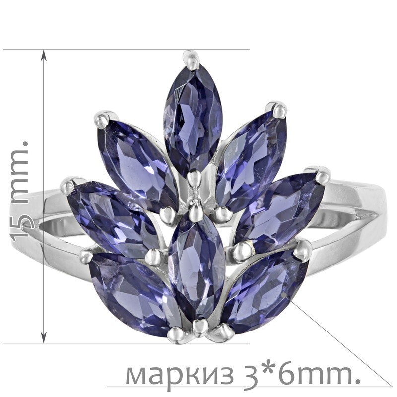 Серебряное кольцо с натуральным иолитом - коллекция Искра. Средний вес изделия с камнями 2.91 гр. Месторождение: Иолит (Бирма). Иолит (Натуральный) маркиз 3*6 мм., средний вес: 0.22 карат. Все изделия собственного производства, гарантия 12 месяцев. Арт. 8051