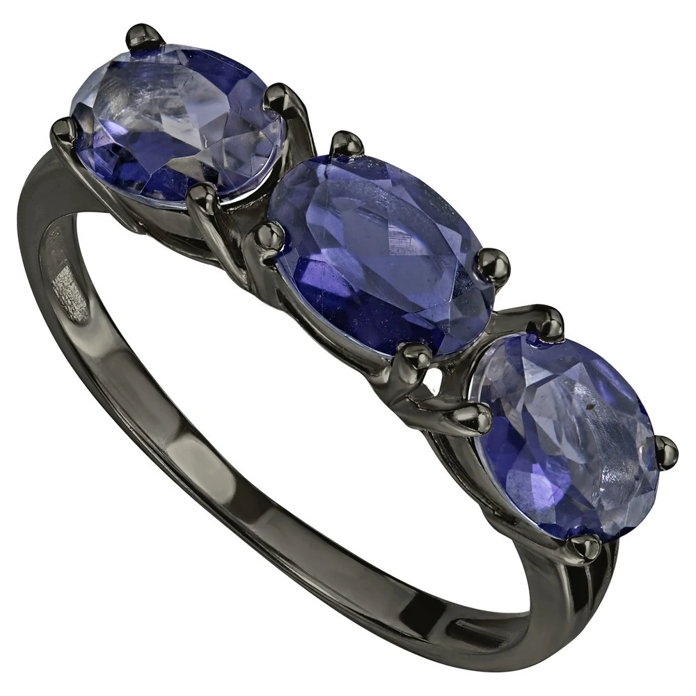 Серебряное кольцо с натуральным иолитом - коллекция Муза, покрытие Черный Родий.