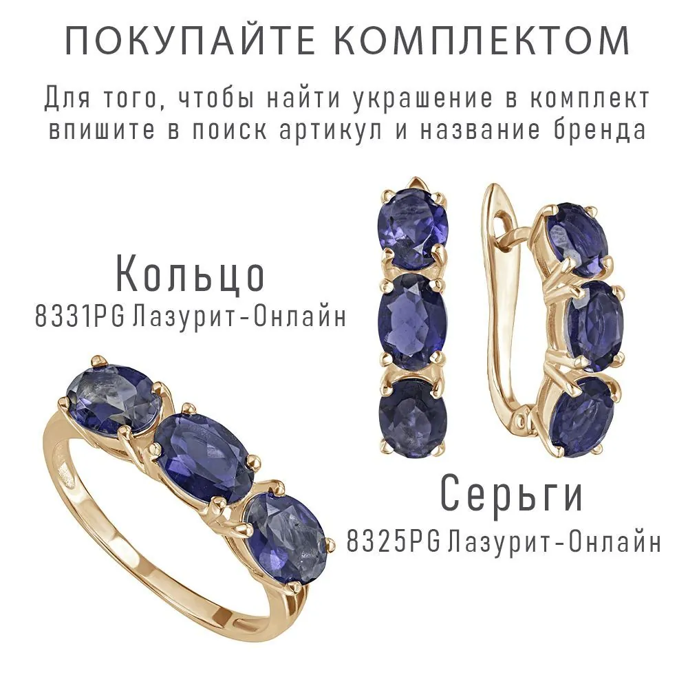 Серебряное кольцо с натуральным иолитом - коллекция Муза. Серебряное кольцо 925 пробы с покрытием розовое золото. Цвет покрытия соответствует швейцарскому цветовому стандарту NIHS -4N и цвету розового золота 585 в России. На последней фотографии мы разместили сравнительную фотографию 3 цвета золотого покрытия. Помимо предания золотого цвета Вашему изделию, тонкий слой золота защищает от окисления. Для более стойкого эффекта золочения и долговечности покрытия мы дополнительно наносим подслой палладия (Pd). Средний вес изделия с камнями 2.84 гр. Месторождение: Иолит (Бирма). Иолит (Натуральный) овал 5*7 мм., средний вес: 0.63 карат. Все изделия собственного производства, гарантия 12 месяцев. Арт. 8331. Иолит – это камень, который называют разными именами: водяной сапфир, синий нефрит, рысий сапфир. Полудрагоценный камень очаровывал переливчатыми оттенками синего и фиолетового. Ещё викинги считали, что он помогает найти путь. Полезен он и для здоровья, например, при мигренях. А главное, дает своему хозяину толчок к самореализации.