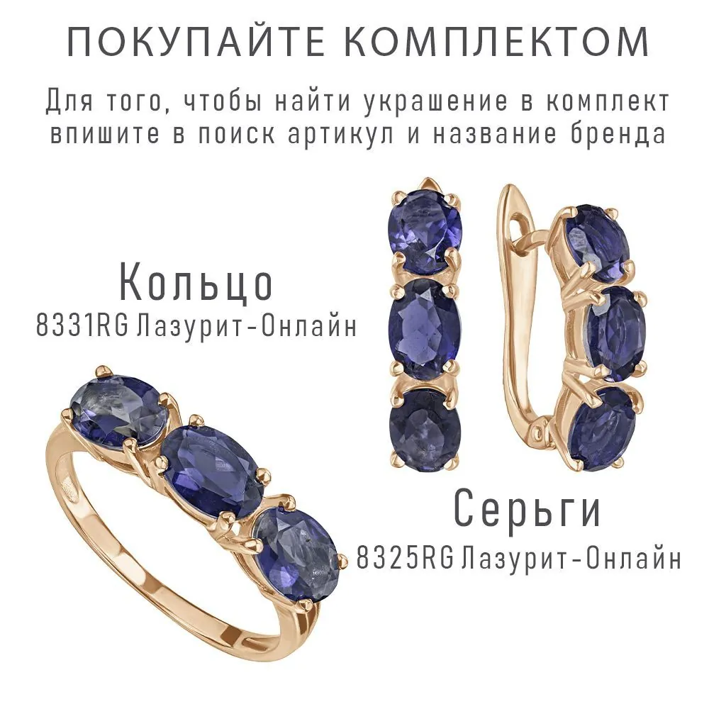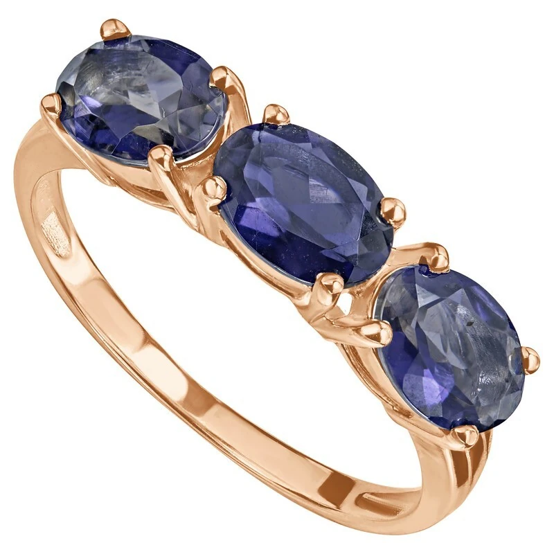 Серебряное кольцо с натуральным иолитом - коллекция Муза. Серебряное кольцо 925 пробы с покрытием красное золото. Цвет покрытия соответствует швейцарскому цветовому стандарту NIHS -5N и цвету красного золота 585 в России. На последней фотографии мы разместили сравнительную фотографию 3 цвета золотого покрытия. Помимо предания золотого цвета Вашему изделию, тонкий слой золота защищает от окисления. Для более стойкого эффекта золочения и долговечности покрытия мы дополнительно наносим подслой палладия (Pd). Средний вес изделия с камнями 2.84 гр. Месторождение: Иолит (Бирма). Иолит (Натуральный) овал 5*7 мм., средний вес: 0.63 карат. Все изделия собственного производства, гарантия 12 месяцев. Арт. 8331. Иолит – это камень, который называют разными именами: водяной сапфир, синий нефрит, рысий сапфир. Полудрагоценный камень очаровывал переливчатыми оттенками синего и фиолетового. Ещё викинги считали, что он помогает найти путь. Полезен он и для здоровья, например, при мигренях. А главное, дает своему хозяину толчок к самореализации.