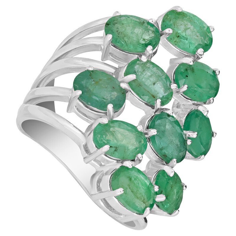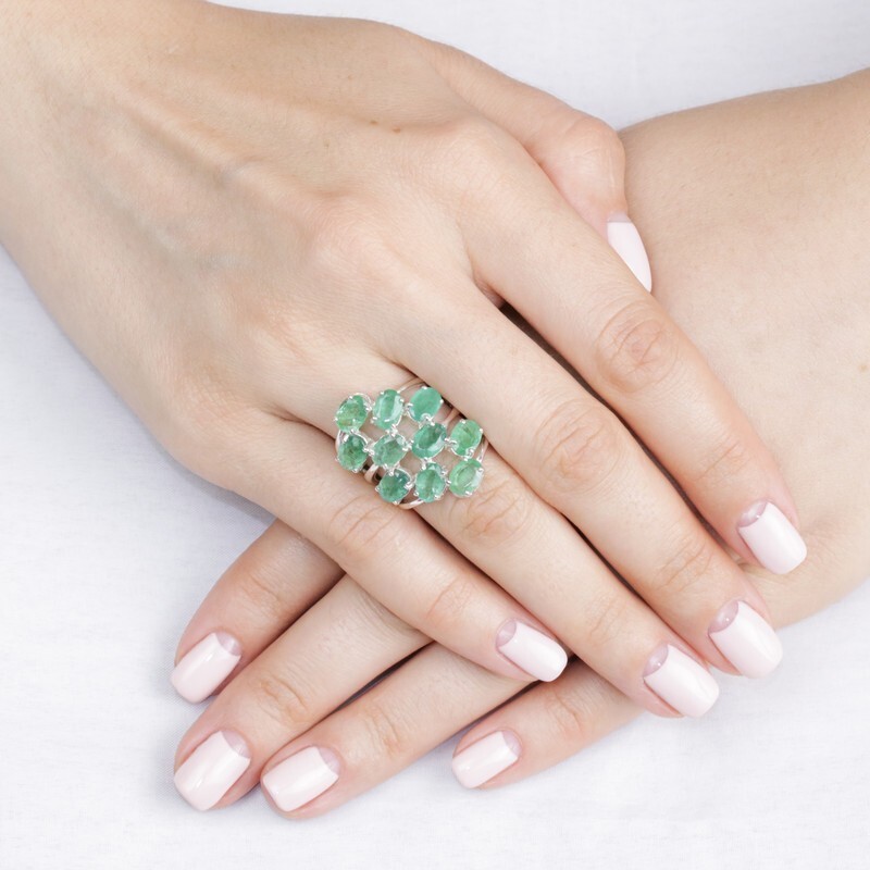 Серебряное кольцо с натуральным изумрудом - коллекция Аэлита. Средний вес изделия с камнями 9.79 гр. Месторождение: Изумруд (Малышевское м-ние, Россия). Изумруд (Натуральный) овал 5*7 мм., средний вес: 0.86 карат. Все изделия собственного производства и имеют гарантию 12 месяцев. Арт. 7848