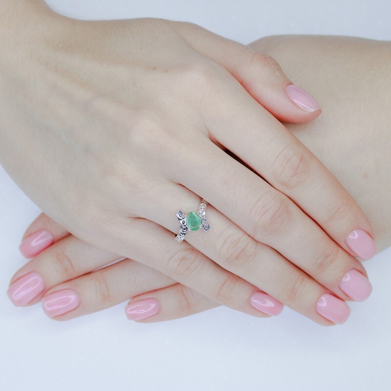 Серебряное кольцо с натуральным изумрудом - коллекция Тея. Средний вес изделия с камнями 2.29 гр. Месторождение: Изумруд (Замбия, Восточная Африка)]; Изумруд (Натуральный) овал 5*7 мм., средний вес: 0.86 карат. Все изделия собственного производства и имеют гарантию 12 месяцев. Арт. 8066