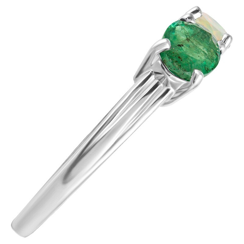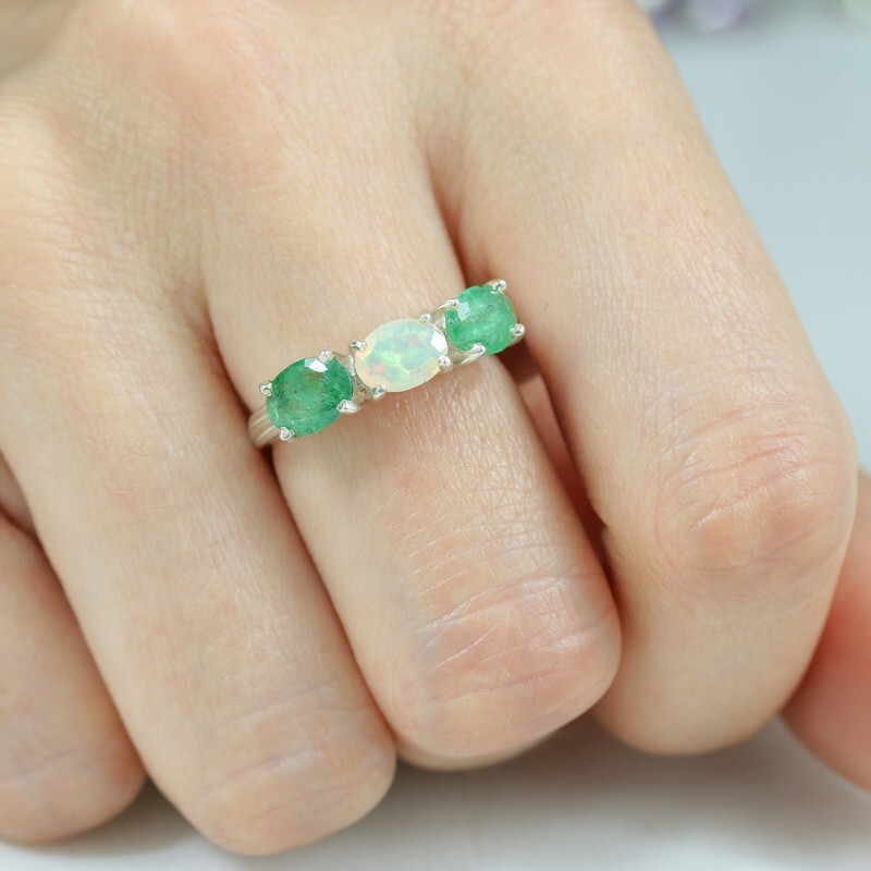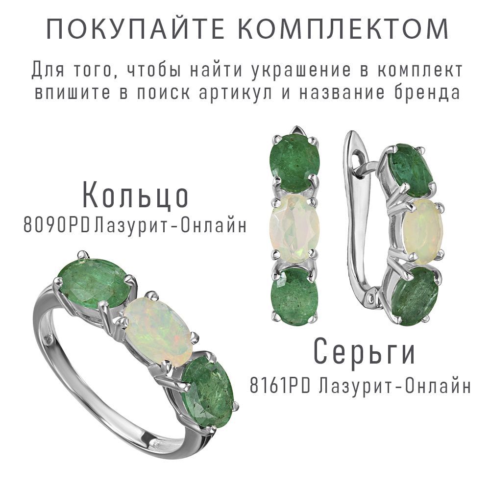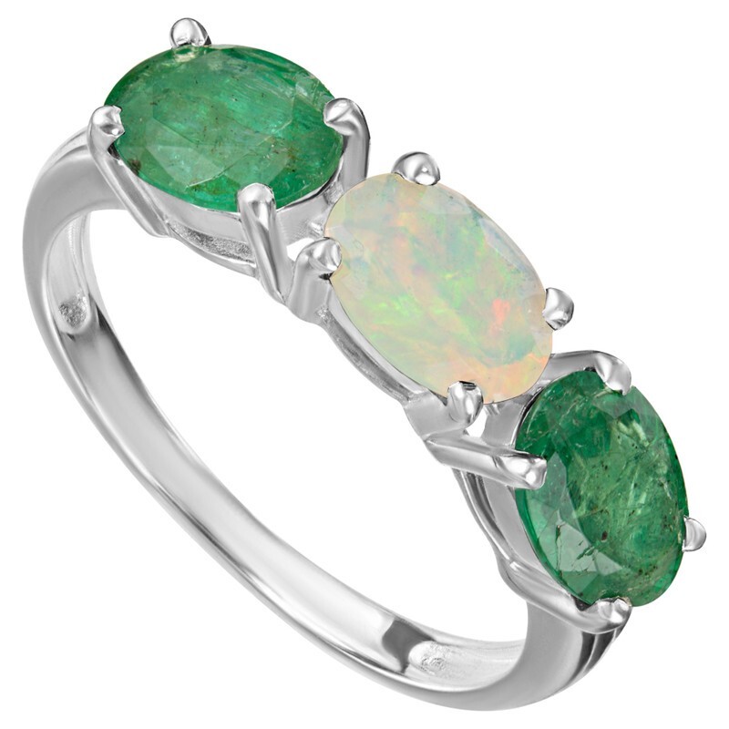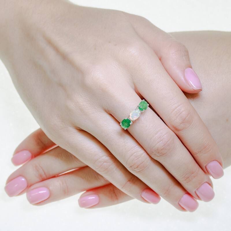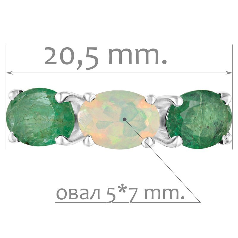 Серебряное кольцо с натуральными камнями изумруд и опал - коллекция Муза. Средний вес изделия с камнями 2.93 гр. Месторождения: Изумруд (Замбия, Восточная Африка) и Опал (Эфиопия). Изумруд (Натуральный) овал 5*7 мм., средний вес: 0.86 карат. и Опал (Натуральный) овал 5*7 мм., средний вес: 0.46 карат. Все изделия собственного производства, гарантия 12 месяцев. Арт. 8090