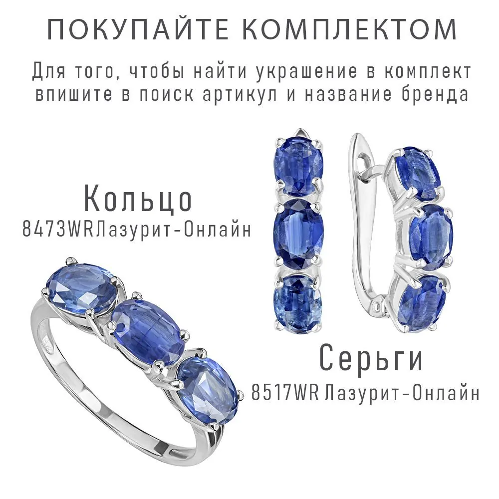 Серебряное кольцо с натуральным кианитом - коллекция Муза. Средний вес украшения с камнями 2.35 гр. Месторождение: Кианит (Непал). Кианит (Натуральный) овал 5*7 мм., средний вес: 1.04 карат. Все изделия собственного производства и имеют гарантию 12 месяцев. Арт. 8473. Кианит — синий камень, однако в зависимости от содержания примесей металлов может быть и других оттенков. Он достаточно редкий и красивый, некоторые кристаллы имеют эффект «кошачьего глаза». Считается, что камень способствует улучшению общего состояния человека, позволяет сохранить верность и наделяет владельца скромностью.