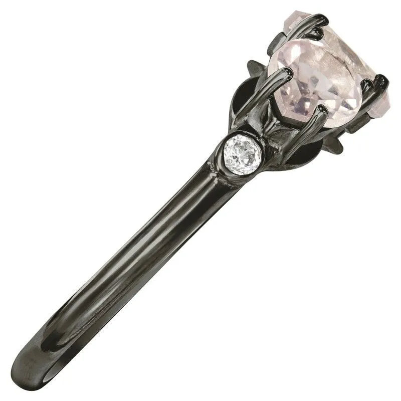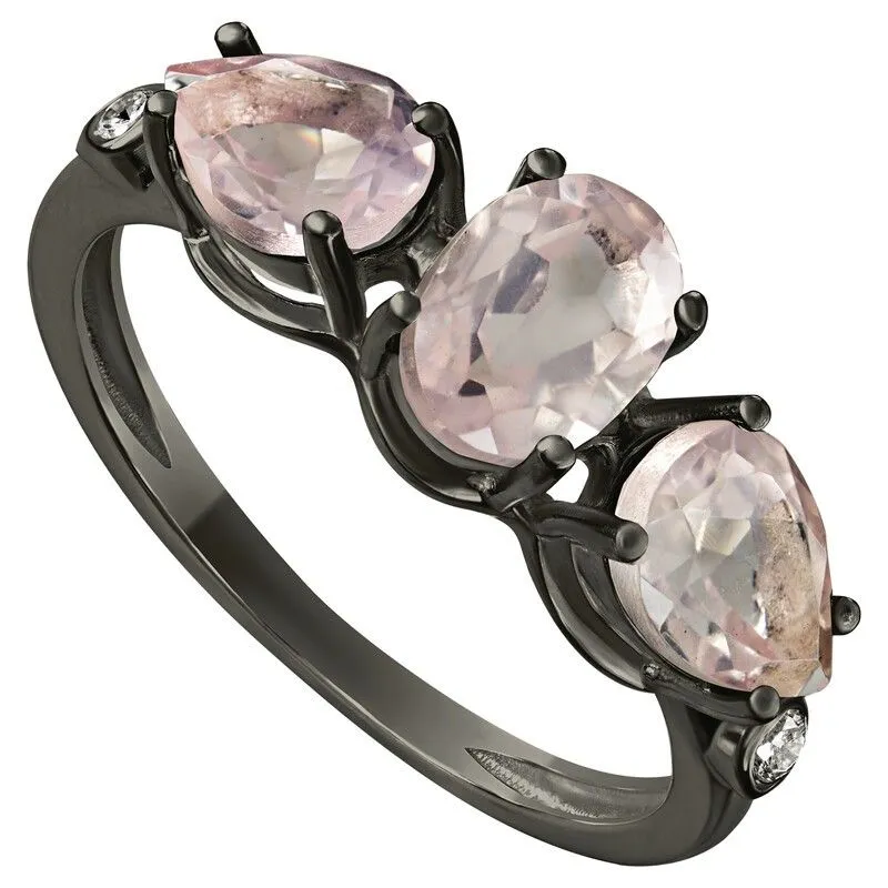Серебряное кольцо с натуральным розовым кварцем - коллекция Сансара / покрытие Черный Родий.Средний вес украшения с камнями 2.25 гр.Месторождение(я): Розовый кварц (Приполярный Урал, Россия).Ювелирные вставки:Розовый кварц (Натуральный) овал 5*7 мм., средний вес: 0.9 карат.Розовый кварц (Натуральный) груша 5*7 мм., средний вес: 0.76 карат.Белый Нанокристалл круг 2 мм., средний вес: 0.06 карат.Все изделия собственного производства и имеют гарантию 12 месяцев. Арт. 8646BR. Розовый кварц – камень сердца. Такое название он получил за способность приносить умиротворение и любовь. Он дарит сочувствие и глубокое понимание гармонии мира. Не обделён он и лечебными свойствами. Это талисман для привлечения в жизнь глубоких чувств и обретения семейного счастья.