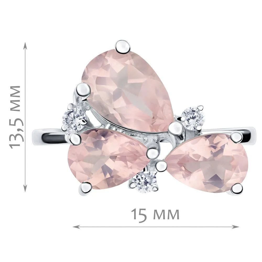 Серебряное кольцо с натуральным розовым кварцем - коллекция Капель / Без покрытия. Средний вес украшения с камнями 3.1 гр. Месторождение: Розовый кварц (Приполярный Урал, Россия) Ювелирные вставки: Розовый кварц (Натуральный) груша 6*9 мм., средний вес: 1.16 карат. Розовый кварц (Натуральный) груша 5*7 мм., средний вес: 0.76 карат. Все изделия собственного производства и имеют гарантию 12 месяцев. Арт. 8769NP. Розовый кварц – камень сердца. Такое название он получил за способность приносить умиротворение и любовь. Он дарит сочувствие и глубокое понимание гармонии мира. Не обделён он и лечебными свойствами. Это талисман для привлечения в жизнь глубоких чувств и обретения семейного счастья.
