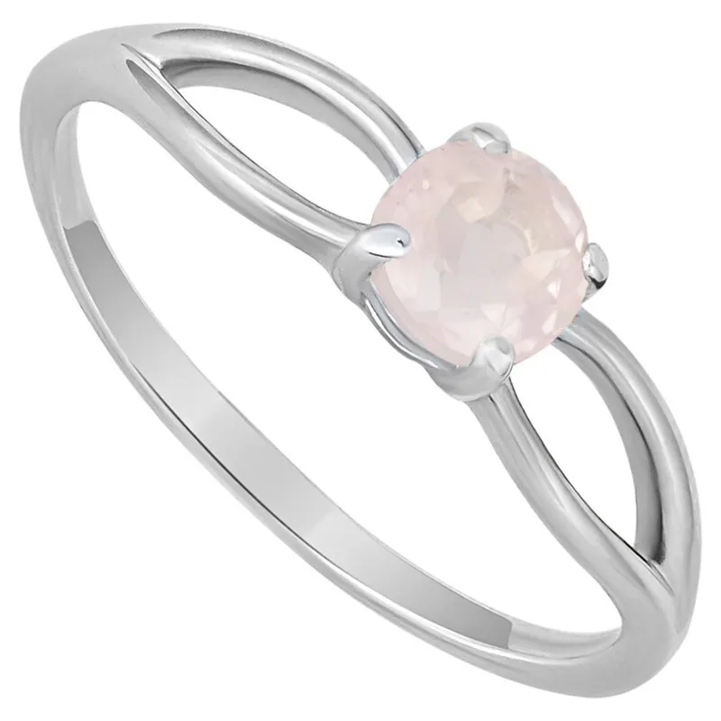 Серебряное кольцо с натуральным розовым кварцем - коллекция Мона / Без покрытия