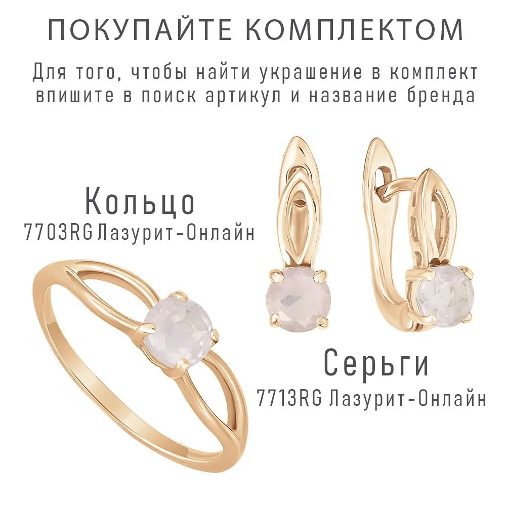 Серебряное кольцо с натуральным розовым кварцем - коллекция Мона. Серебряное кольцо 925 пробы с покрытием красное золото. Цвет покрытия соответствует швейцарскому цветовому стандарту NIHS -5N и цвету красного золота 585 в России. На последней фотографии мы разместили сравнительную фотографию 3 цвета золотого покрытия. Помимо предания золотого цвета Вашему изделию, тонкий слой золота защищает от окисления. Для более стойкого эффекта золочения и долговечности покрытия мы дополнительно наносим подслой палладия (Pd). Средний вес изделия с камнем составляет 1.57 гр. Месторождение(я): Розовый кварц (Приполярный Урал, Россия). Розовый кварц (Натуральный) круг 5 мм., средний вес: 0.53 карат. Все изделия собственного производства, гарантия 12 месяцев. Арт. 7703. Розовый кварц – камень сердца. Такое название он получил за способность приносить умиротворение и любовь. Он дарит сочувствие и глубокое понимание гармонии мира. Не обделён он и лечебными свойствами. Это талисман для привлечения в жизнь глубоких чувств и обретения семейного счастья.