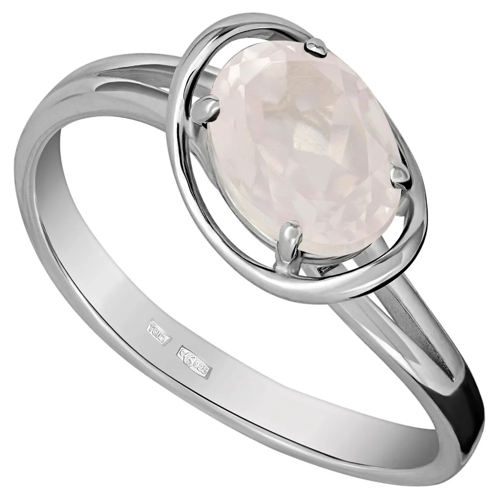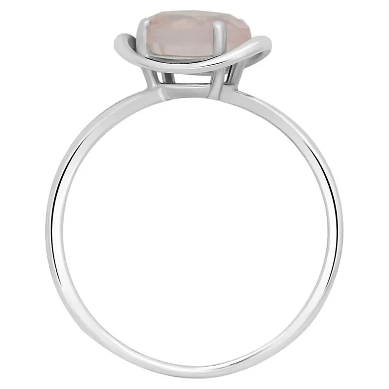 Серебряное кольцо с натуральным розовым кварцем - коллекция Фрейя / покрытие Палладий