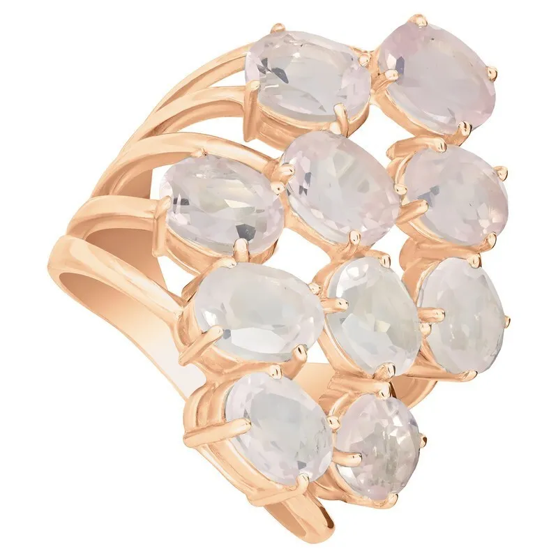 Серебряное кольцо с натуральным розовым кварцем - коллекция Аэлита / покрытие Красное Золото