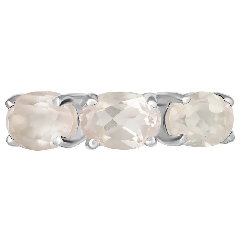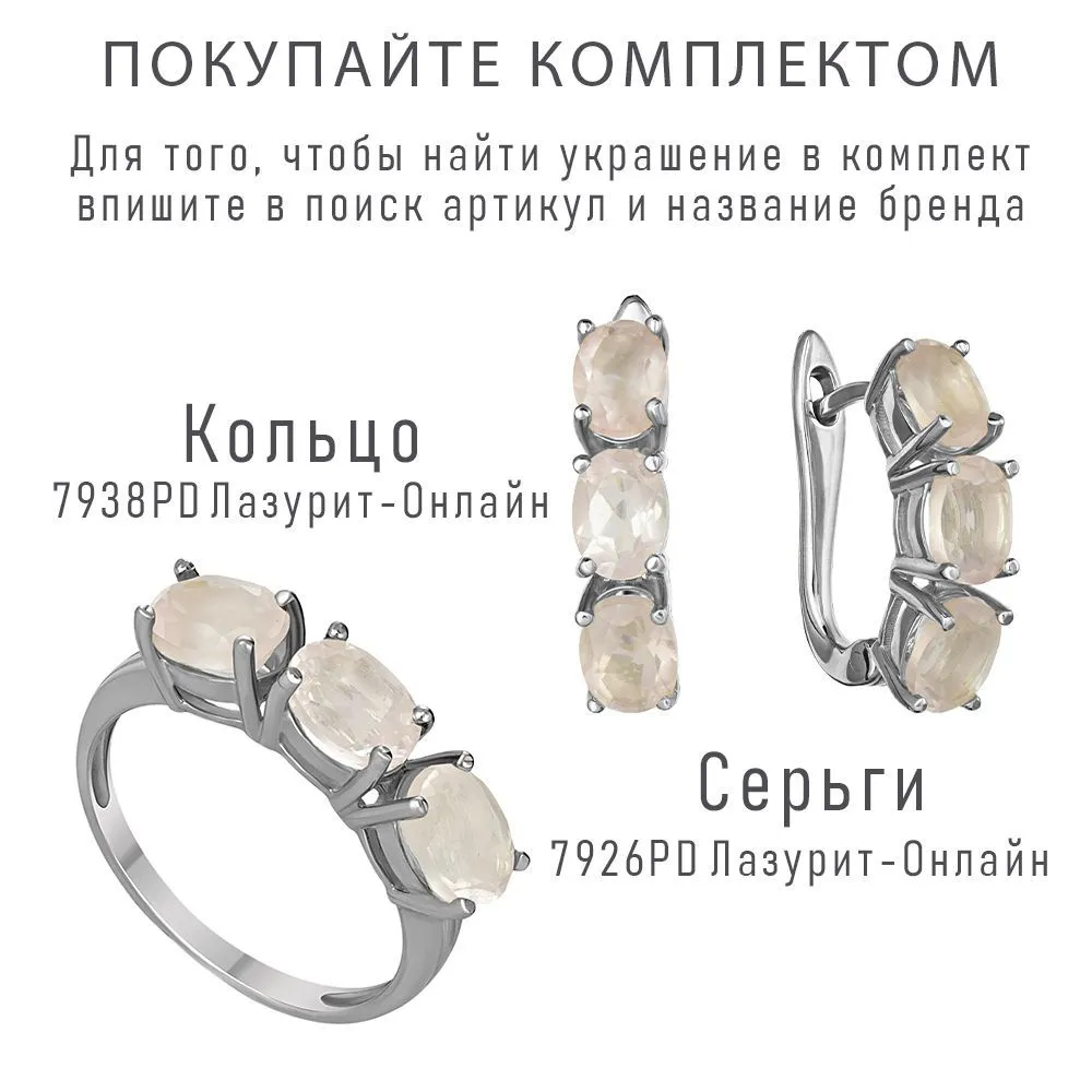 Серебряное кольцо с натуральным розвовым кварцем - коллекция Муза / покрытие Палладий