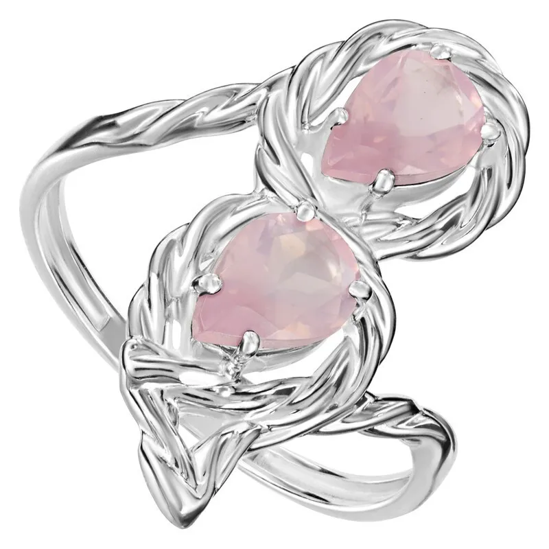 Серебряное кольцо с натуральным розовым кварцем - коллекция Ривьера / покрытие Белый Родий