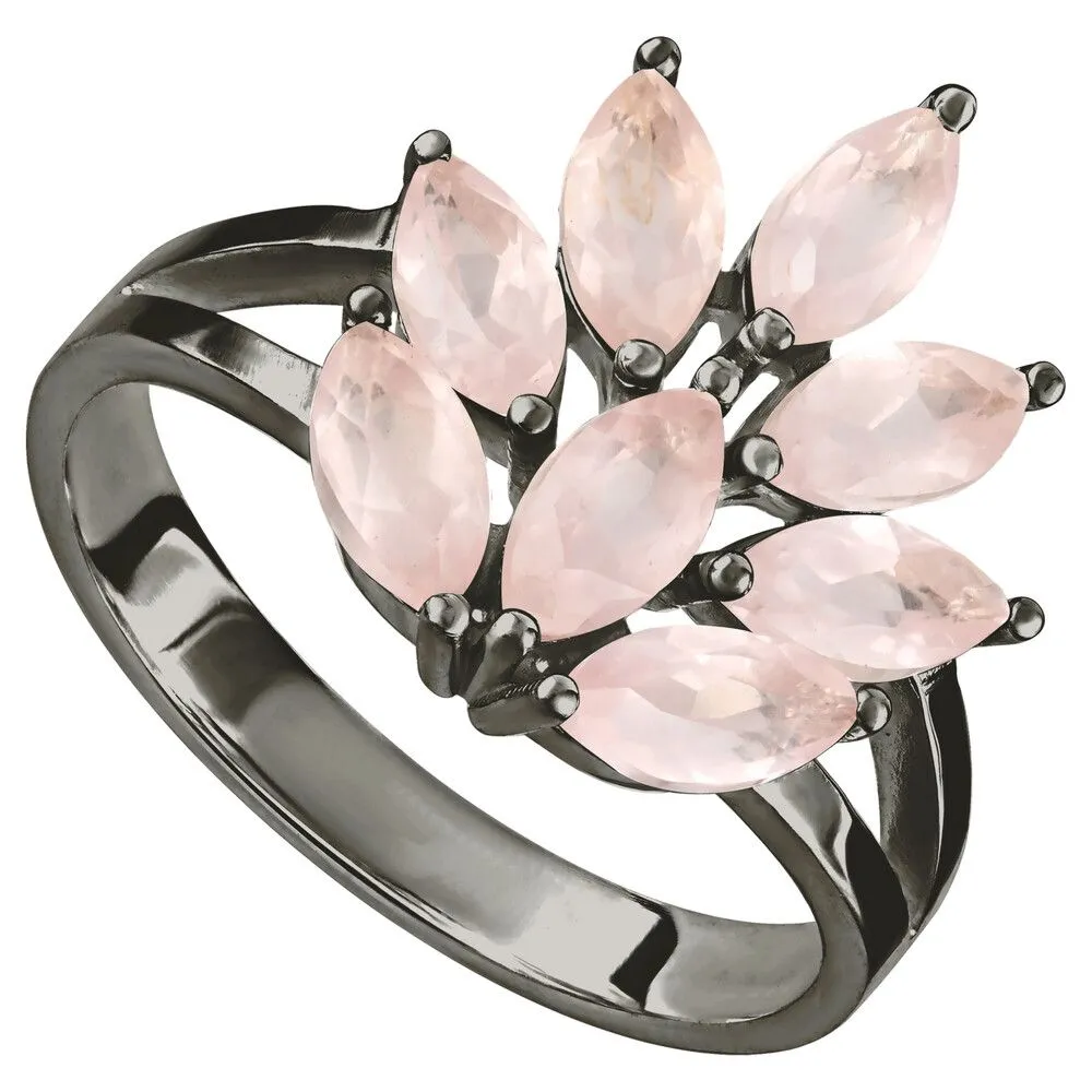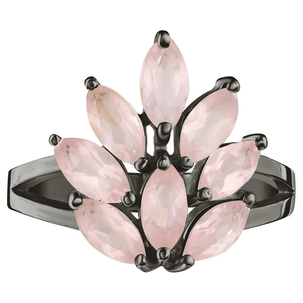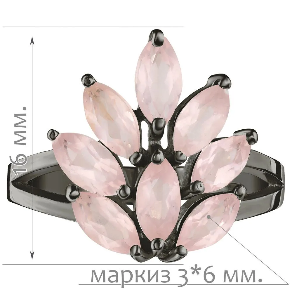 Серебряное кольцо с натуральным розовым кварцем - коллекция Искра / Черный Родий. Средний вес украшения с камнями 3.12 гр. Месторождение: Розовый кварц (Приполярный Урал, Россия). Ювелирные вставки: Розовый кварц (Натуральный) маркиз 3*6 мм., средний вес: 0.24 карат. Все изделия собственного производства и имеют гарантию 12 месяцев, к каждому изделию прилагается паспорт. Арт. 8904BR