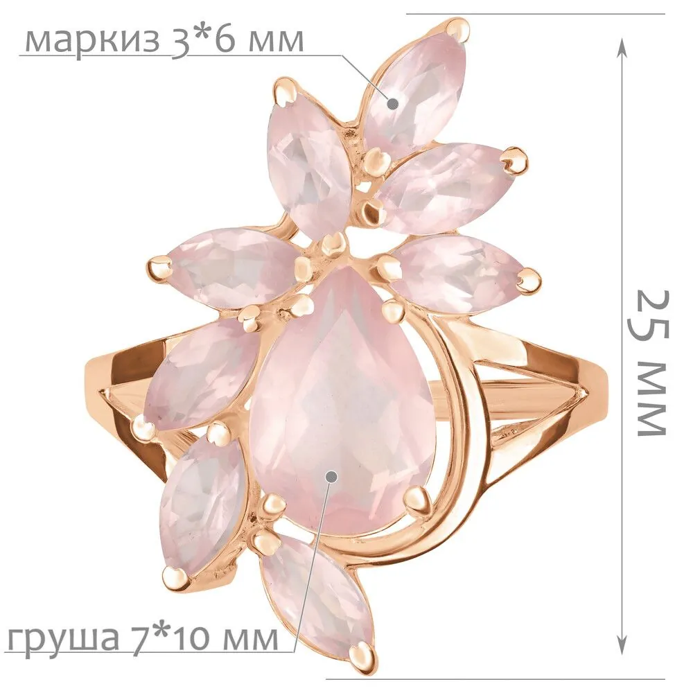 Серебряное кольцо с натуральным розовым кварцем - коллекция Элегия / Красное Золото. Средний вес украшения с камнями 4.3 гр. Месторождение: Розовый кварц (Приполярный Урал, Россия). Ювелирные вставки: Розовый кварц (Натуральный) груша 7*10 мм., средний вес: 1.57 карат. Розовый кварц (Натуральный) маркиз 3*6 мм., средний вес: 0.24 карат. Все изделия собственного производства и имеют гарантию 12 месяцев, к каждому изделию прилагается паспорт. Арт. 8924RG