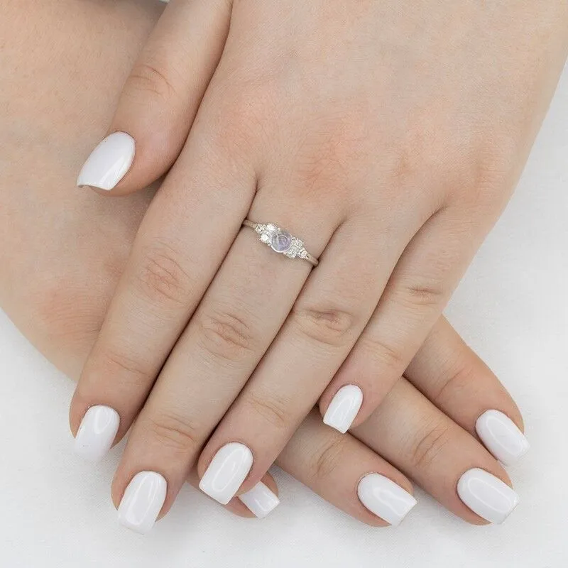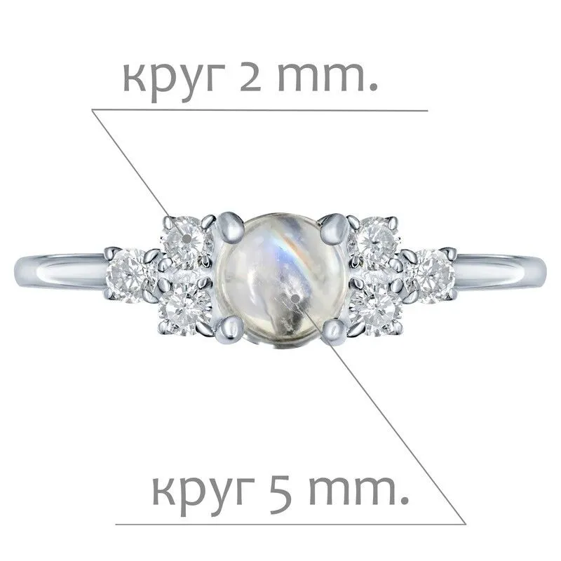 Серебряное кольцо с натуральным лунным камнем - коллекция Нова / покрытие Чистое Серебро.Средний вес украшения с камнями 1.19 гр.Месторождение(я): Лунный камень (Мадагаскар).Ювелирные вставки:Лунный камень (Натуральный) круг 5 мм., средний вес: 0.59 карат.Белый Нанокристалл круг 2 мм., средний вес: 0.06 карат.Все изделия собственного производства и имеют гарантию 12 месяцев. Арт. 8671AG. Лунный камень – удивительный по красоте минерал, который всегда считался подарком самой Луны! Он успокаивает владельца и способен избавить его от груза негатива. Особенно подходит женщинам, так как усиливает природное очарование. Считается, что украшения с этим минералом привлекают настоящую любовь.