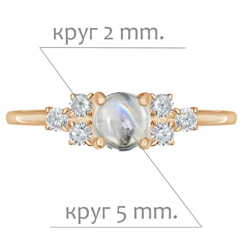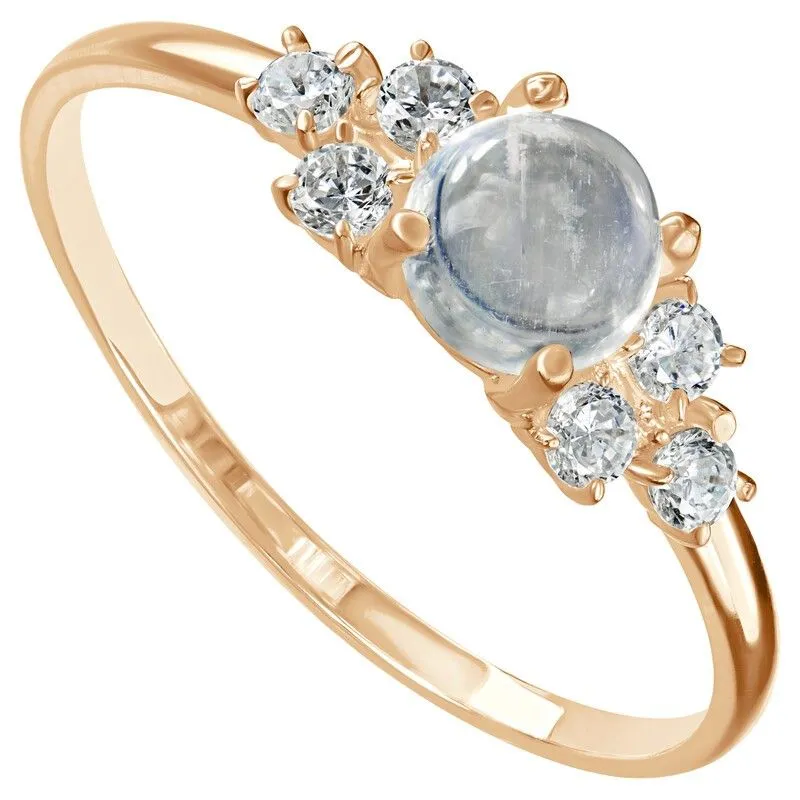 Серебряное кольцо с натуральным лунным камнем - коллекция Нова / покрытие Розовое Золото.Средний вес украшения с камнями 1.24 гр.Месторождение(я): Лунный камень (Мадагаскар).Ювелирные вставки:Лунный камень (Натуральный) круг 5 мм., средний вес: 0.59 карат.Белый Нанокристалл круг 2 мм., средний вес: 0.06 карат.Все изделия собственного производства и имеют гарантию 12 месяцев. Арт. 8671PG. Лунный камень – удивительный по красоте минерал, который всегда считался подарком самой Луны! Он успокаивает владельца и способен избавить его от груза негатива. Особенно подходит женщинам, так как усиливает природное очарование. Считается, что украшения с этим минералом привлекают настоящую любовь.