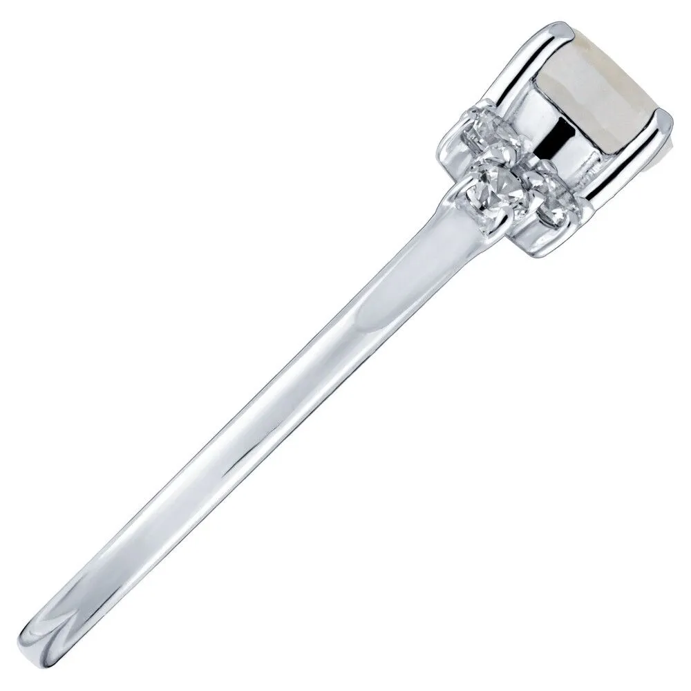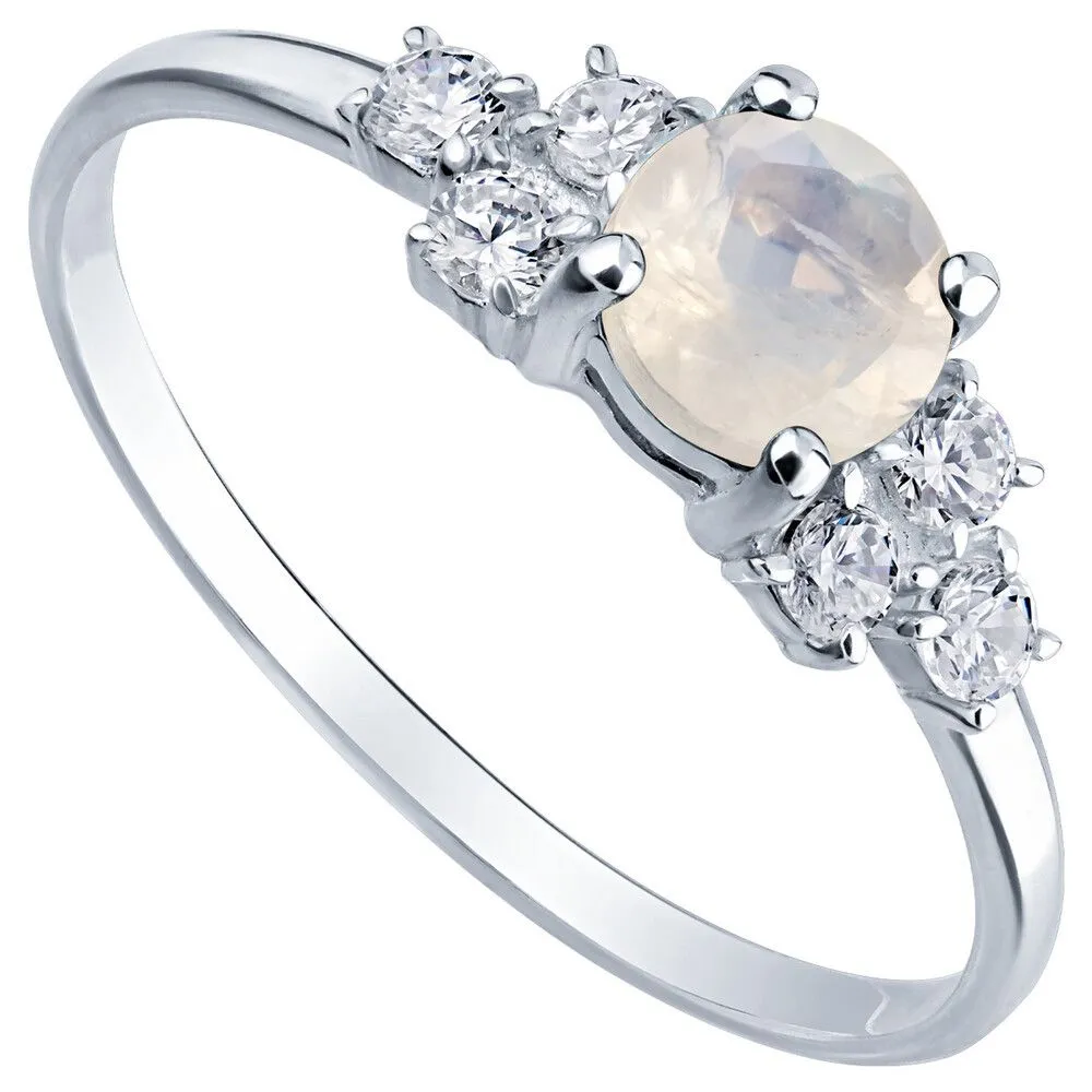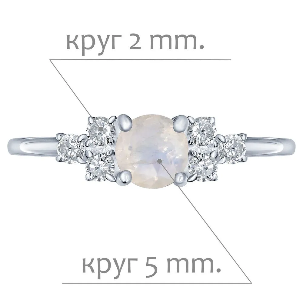 Серебряное кольцо с натуральным лунным камнем - коллекция Нова / Чистое Серебро. Средний вес украшения с камнями 1.17 гр. Месторождение: Лунный камень (Мадагаскар). Ювелирные вставки: Лунный камень (Натуральный) круг 5 мм., средний вес: 0.64 карат. Белый Нанокристалл круг 2 мм. Все изделия собственного производства и имеют гарантию 12 месяцев, к каждому изделию прилагается паспорт. Арт. 8898AG