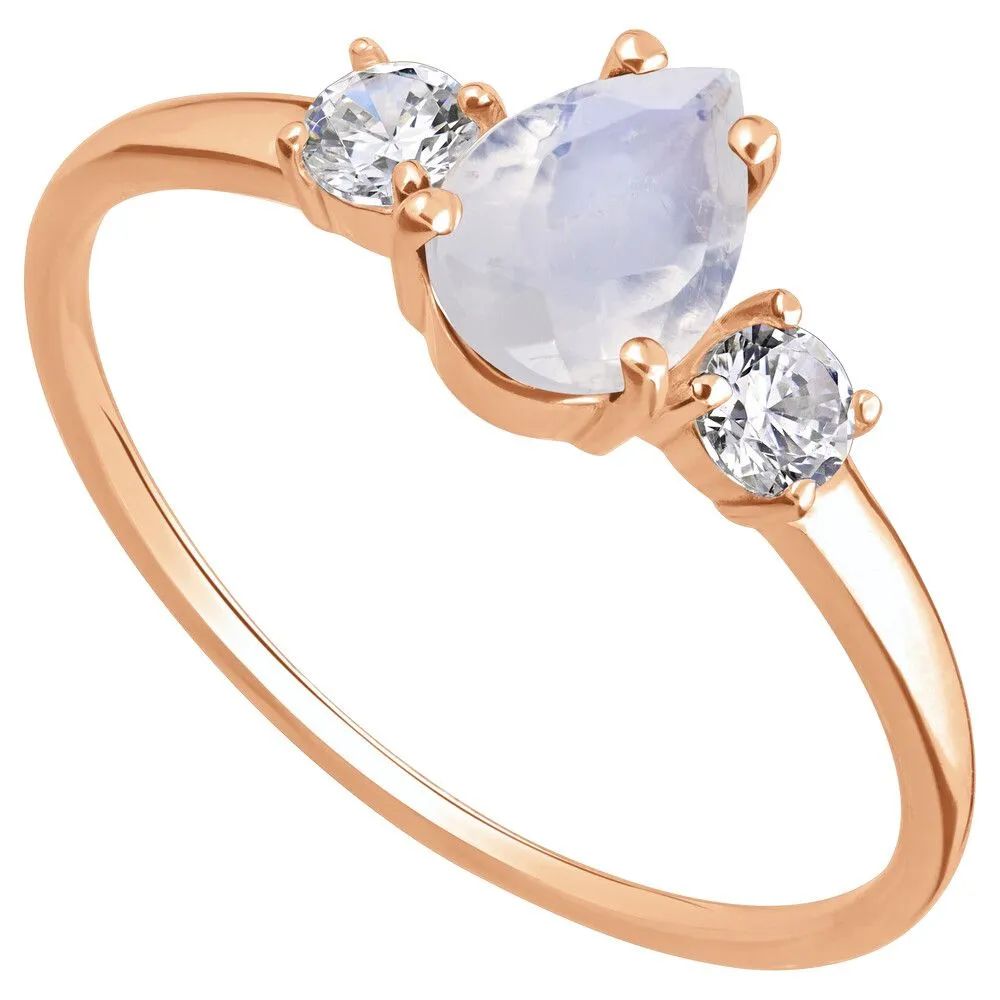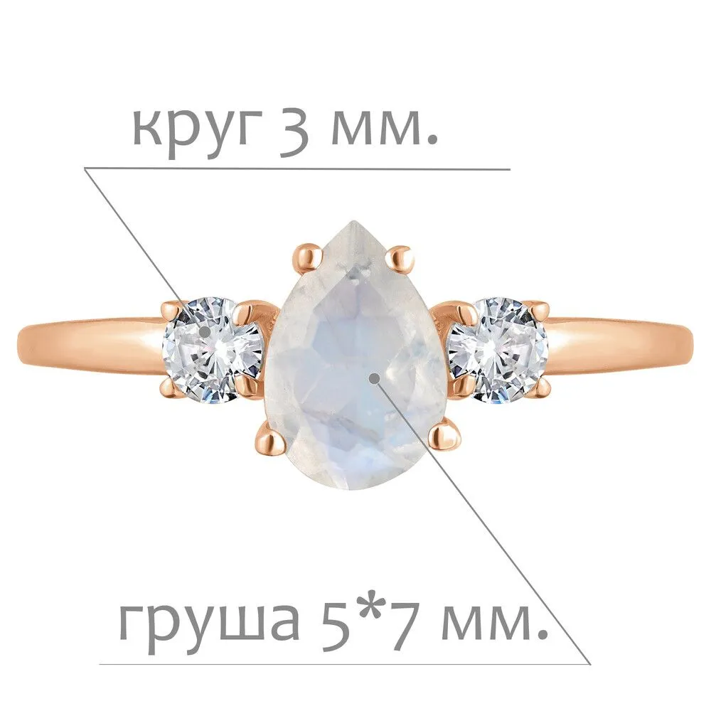 Серебряное кольцо с натуральным лунным камнем - коллекция Алсу (малая) / Красное Золото. Средний вес украшения с камнями 1.09 гр. Месторождение: Лунный камень (Мадагаскар). Ювелирные вставки: Лунный камень (Натуральный) груша 5*7 мм., средний вес: 0.74 карат. Белый Нанокристалл круг 3 мм. Все изделия собственного производства и имеют гарантию 12 месяцев, к каждому изделию прилагается паспорт. Арт. 8913RG