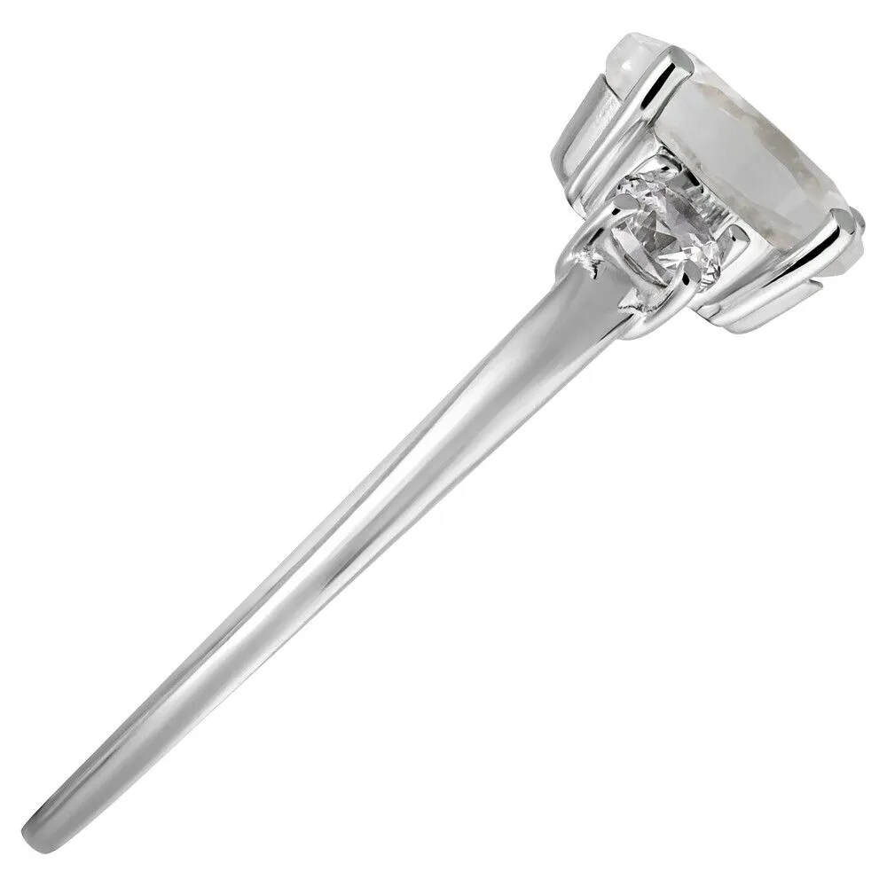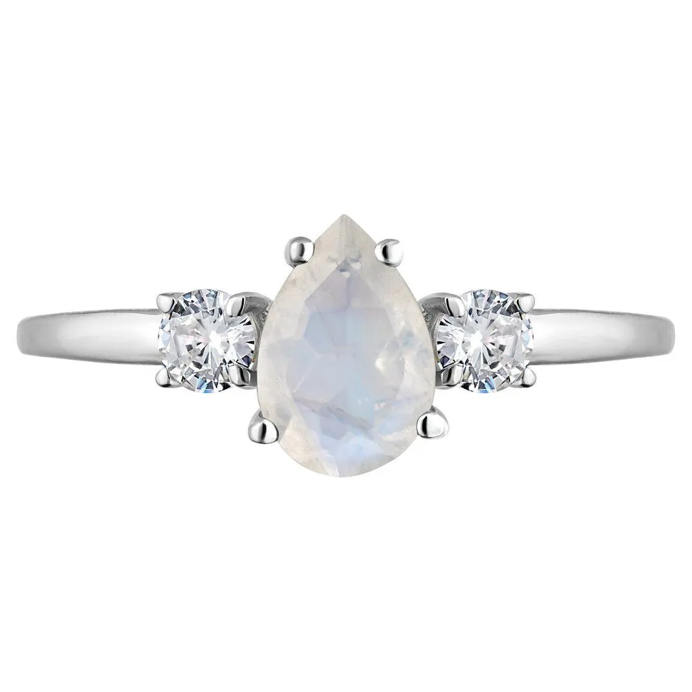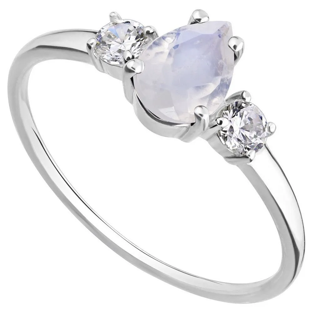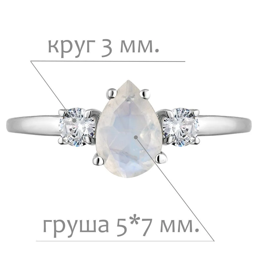 Серебряное кольцо с натуральным лунным камнем - коллекция Алсу (малая) / Белый Родий. Средний вес украшения с камнями 1.09 гр. Месторождение: Лунный камень (Мадагаскар). Ювелирные вставки: Лунный камень (Натуральный) груша 5*7 мм., средний вес: 0.74 карат. Белый Нанокристалл круг 3 мм. Все изделия собственного производства и имеют гарантию 12 месяцев, к каждому изделию прилагается паспорт. Арт. 8913WR