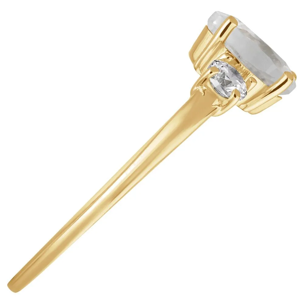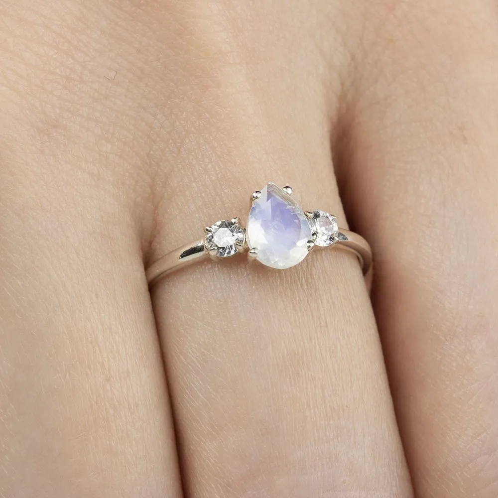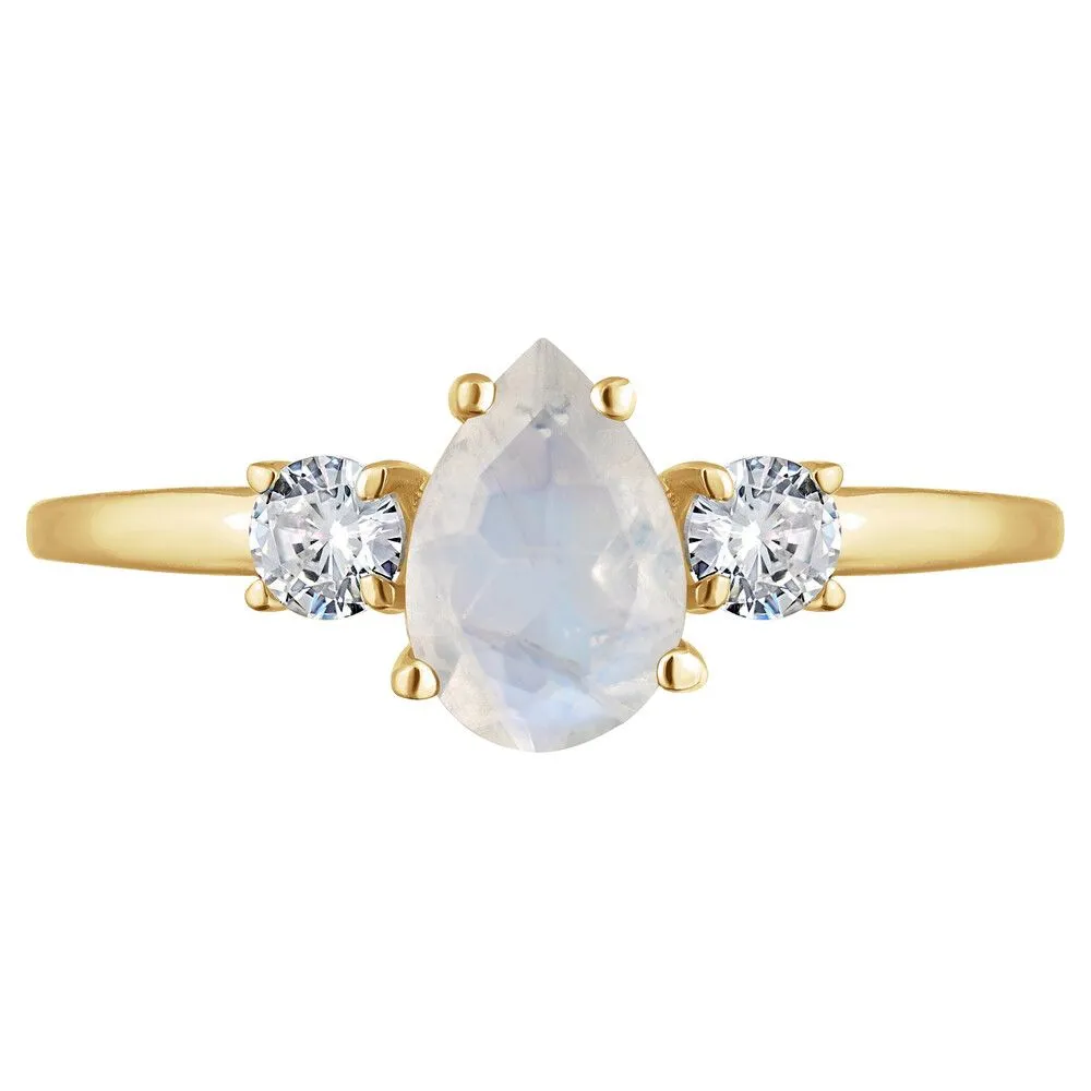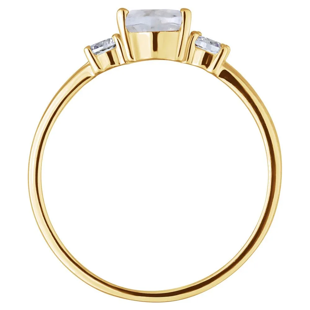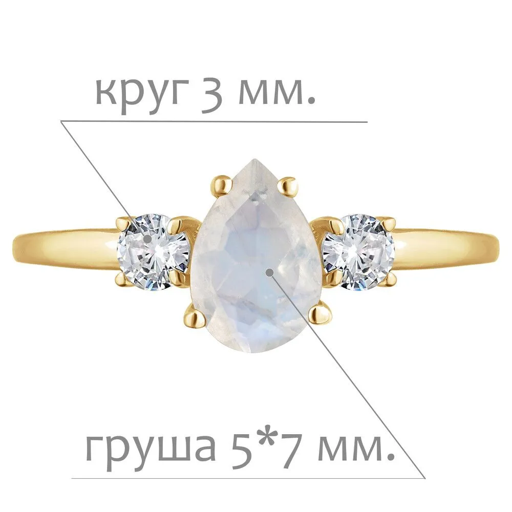 Серебряное кольцо с натуральным лунным камнем - коллекция Алсу (малая) / Желтое Золото. Средний вес украшения с камнями 1.09 гр. Месторождение: Лунный камень (Мадагаскар). Ювелирные вставки: Лунный камень (Натуральный) груша 5*7 мм., средний вес: 0.74 карат. Белый Нанокристалл круг 3 мм. Все изделия собственного производства и имеют гарантию 12 месяцев, к каждому изделию прилагается паспорт. Арт. 8913YG