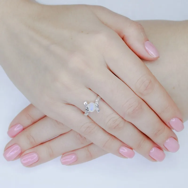 Серебряное кольцо с натуральным лунным камнем - коллекция Тея / покрытие Чистое Серебро