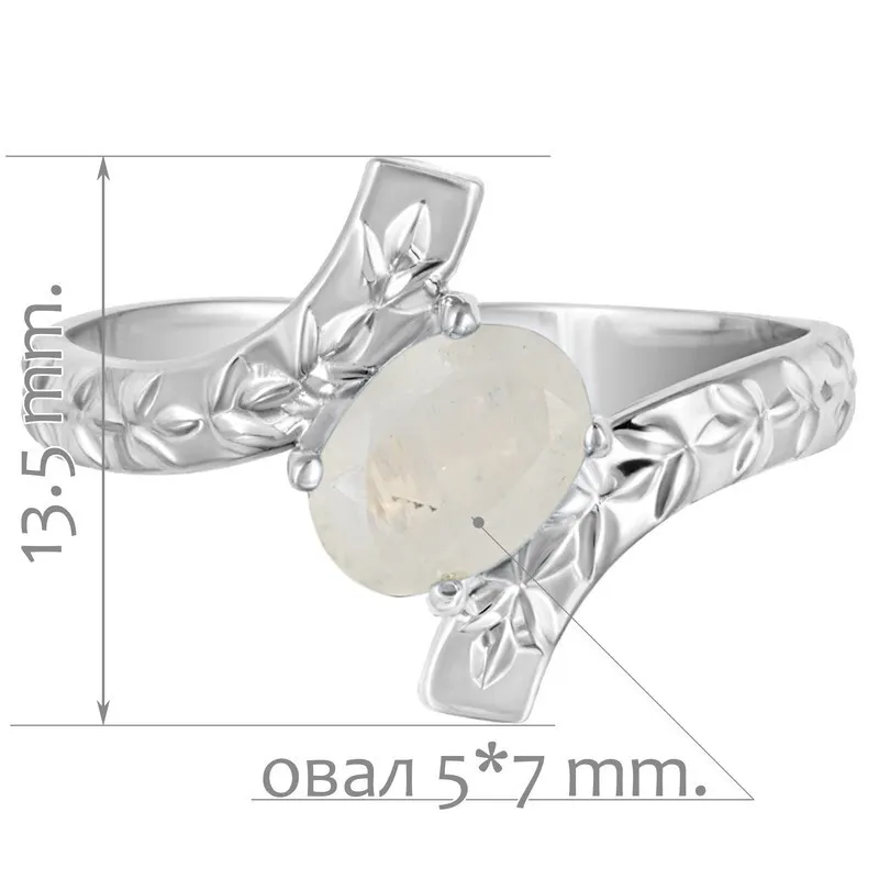 Серебряное кольцо с натуральным лунным камнем - коллекция Тея. Средний вес изделия с камнями 2.41 гр. Месторождение: Лунный камень (Мадагаскар)]; Лунный камень (Натуральный) овал 5*7 мм., средний вес: 0.75 карат. Все изделия собственного производства, гарантия 12 месяцев. Арт. 8067