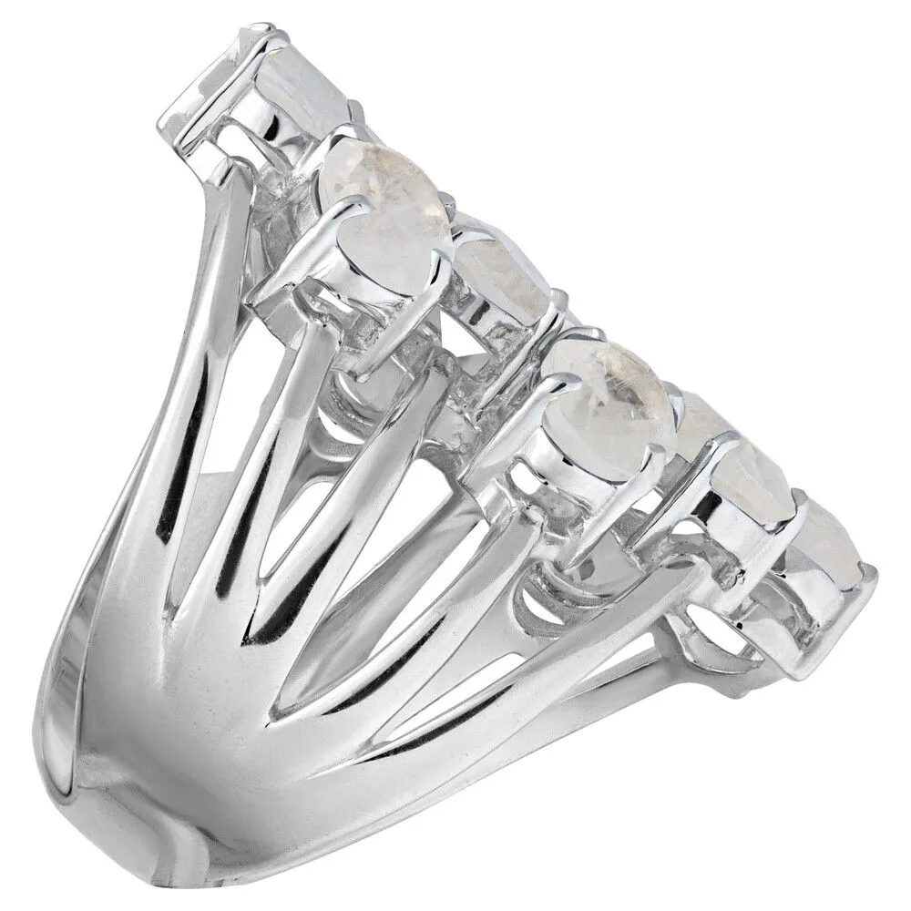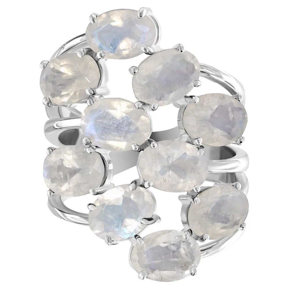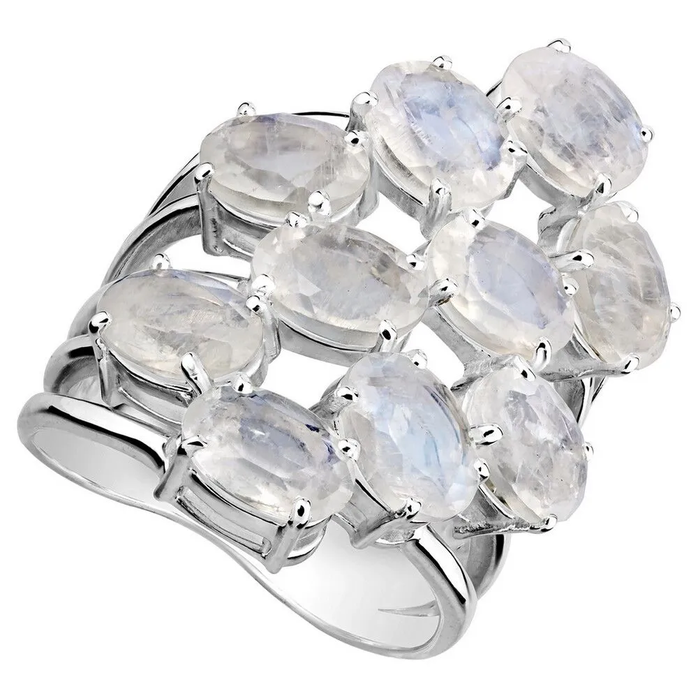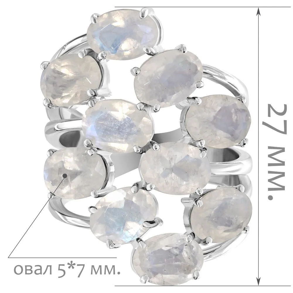 Серебряное кольцо с натуральным лунным камнем - коллекция Аэлита / Без покрытия. Средний вес украшения с камнями 9.29 гр. Месторождение: Лунный камень (Мадагаскар). Ювелирные вставки: Лунный камень (Натуральный) овал 5*7 мм., средний вес: 0.79 карат. Все изделия собственного производства и имеют гарантию 12 месяцев, к каждому изделию прилагается паспорт. Арт. 8909NP