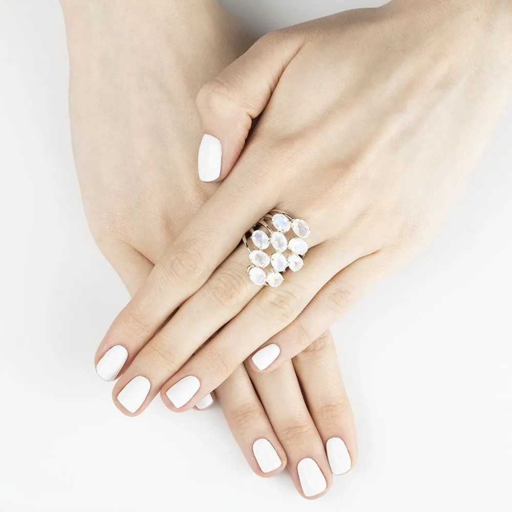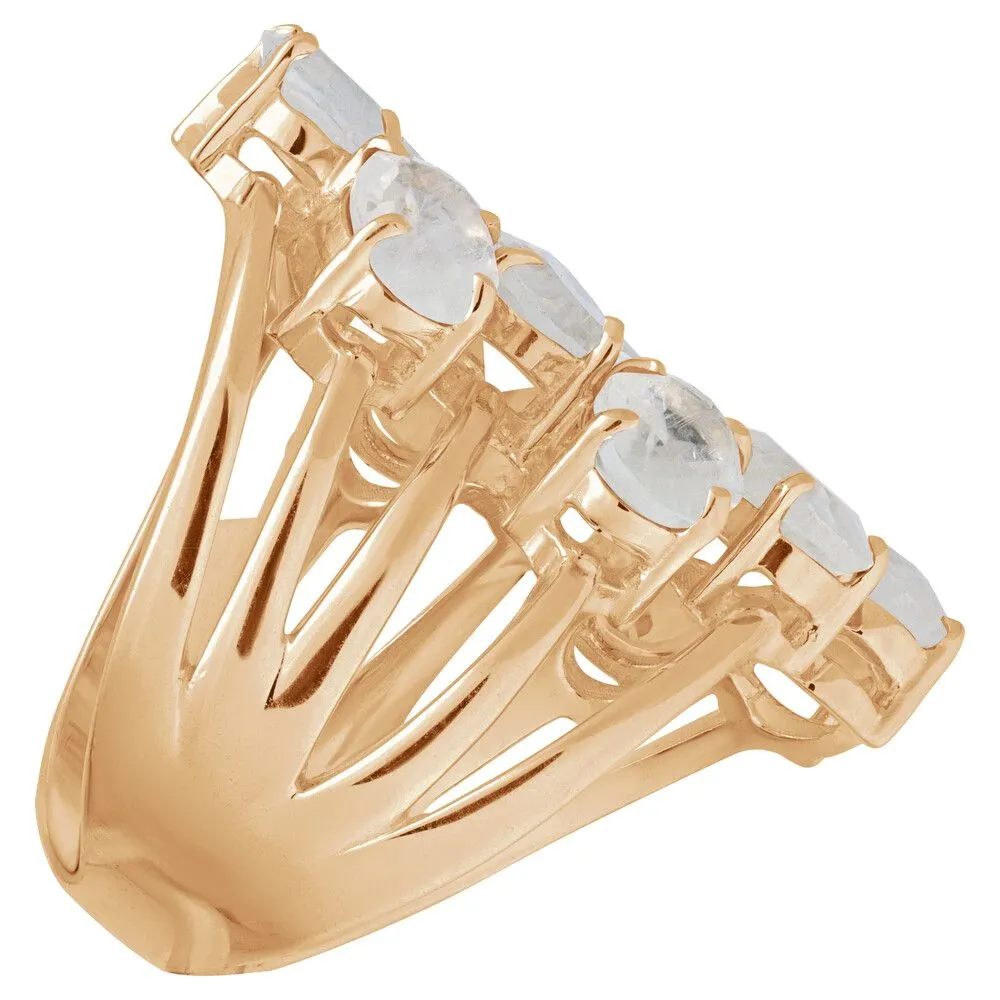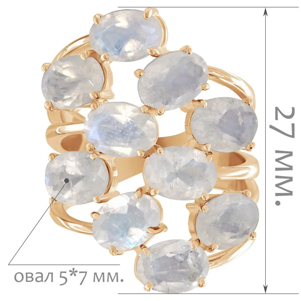 Серебряное кольцо с натуральным лунным камнем - коллекция Аэлита / Розовое Золото. Средний вес украшения с камнями 9.29 гр. Месторождение: Лунный камень (Мадагаскар). Ювелирные вставки: Лунный камень (Натуральный) овал 5*7 мм., средний вес: 0.79 карат. Все изделия собственного производства и имеют гарантию 12 месяцев, к каждому изделию прилагается паспорт. Арт. 8909PG