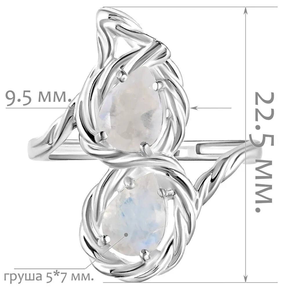Серебряное кольцо с натуральным лунным камнем - коллекция Ривьера / Без покрытия. Средний вес украшения с камнями 2.43 гр. Месторождение: Лунный камень (Мадагаскар). Ювелирные вставки: Лунный камень (Натуральный) груша 5*7 мм., средний вес: 0.74 карат. Все изделия собственного производства и имеют гарантию 12 месяцев, к каждому изделию прилагается паспорт. Арт. 8910NP