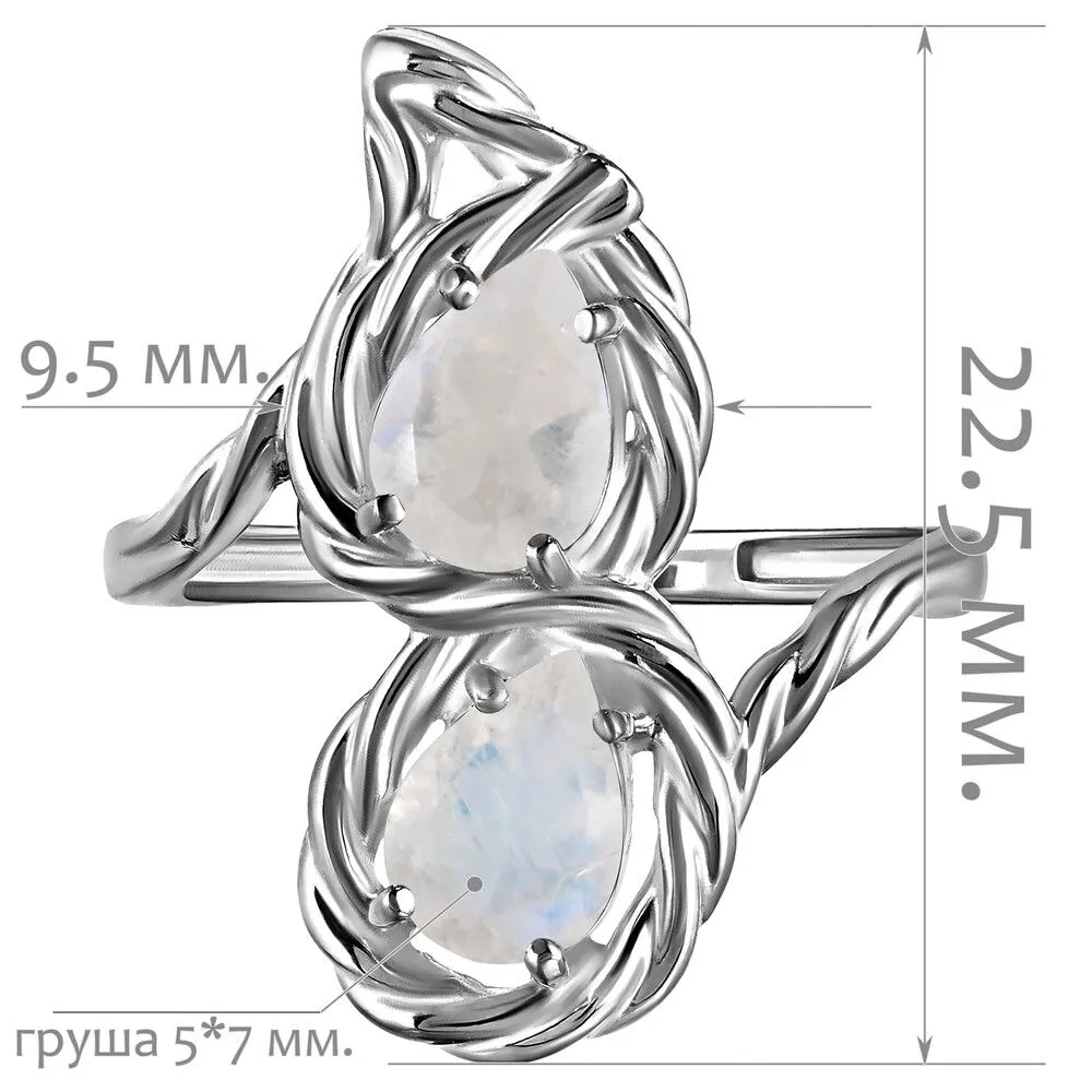 Серебряное кольцо с натуральным лунным камнем - коллекция Ривьера / Палладий. Средний вес украшения с камнями 2.43 гр. Месторождение: Лунный камень (Мадагаскар). Ювелирные вставки: Лунный камень (Натуральный) груша 5*7 мм., средний вес: 0.74 карат. Все изделия собственного производства и имеют гарантию 12 месяцев, к каждому изделию прилагается паспорт. Арт. 8910PD