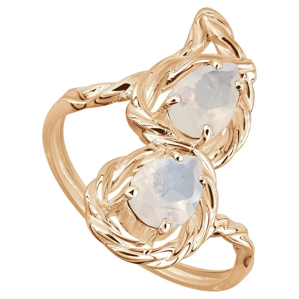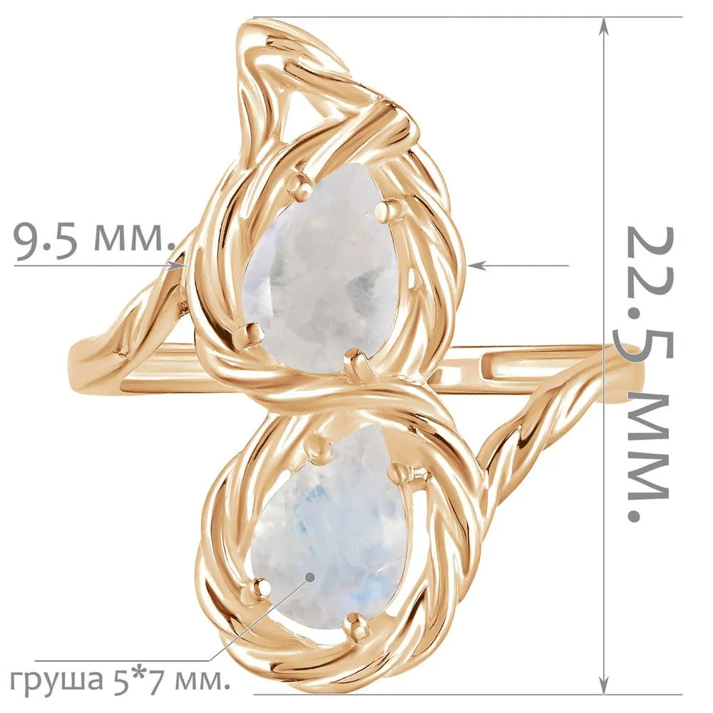 Серебряное кольцо с натуральным лунным камнем - коллекция Ривьера / Розовое Золото. Средний вес украшения с камнями 2.43 гр. Месторождение: Лунный камень (Мадагаскар). Ювелирные вставки: Лунный камень (Натуральный) груша 5*7 мм., средний вес: 0.74 карат. Все изделия собственного производства и имеют гарантию 12 месяцев, к каждому изделию прилагается паспорт. Арт. 8910PG
