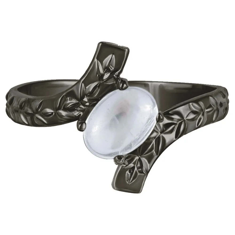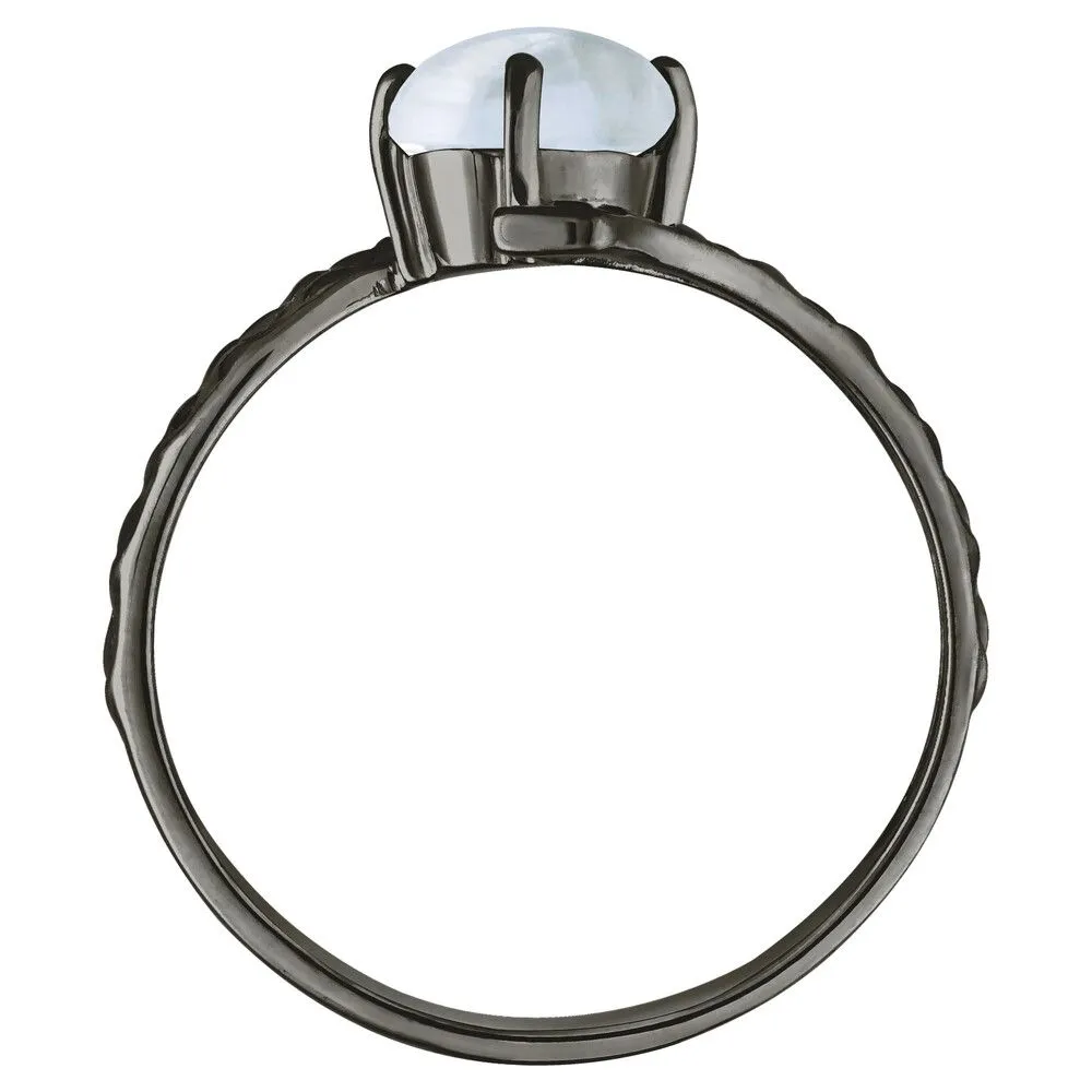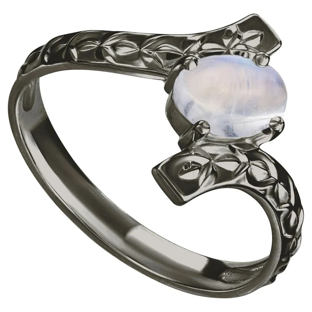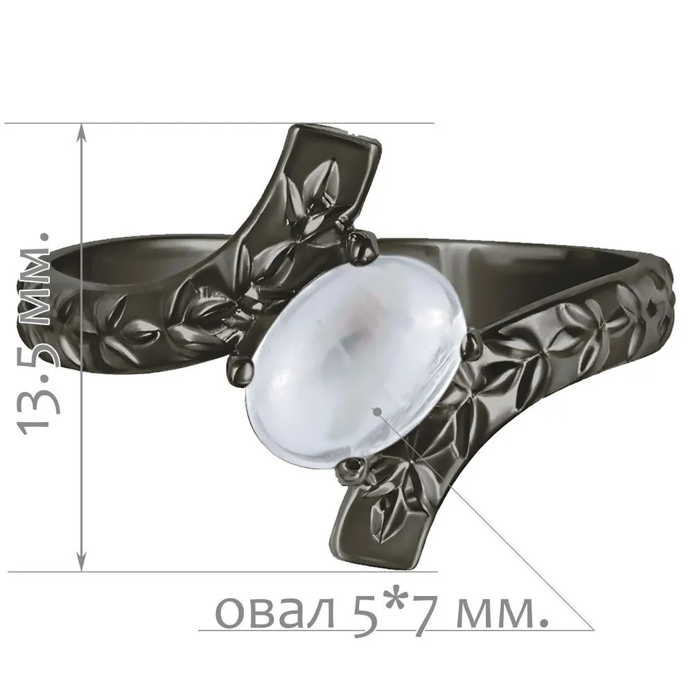 Серебряное кольцо с натуральным лунным камнем (каб.) - коллекция Тея / Черный Родий. Средний вес украшения с камнями 2.02 гр. Месторождение: Лунный камень (Мадагаскар). Ювелирные вставки: Лунный камень (Натуральный) овал 5*7 мм., средний вес: 0.76 карат. Все изделия собственного производства и имеют гарантию 12 месяцев, к каждому изделию прилагается паспорт. Арт. 8923BR