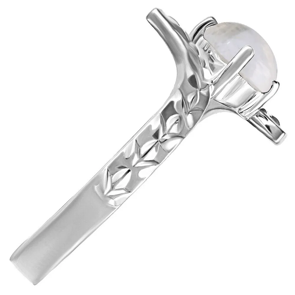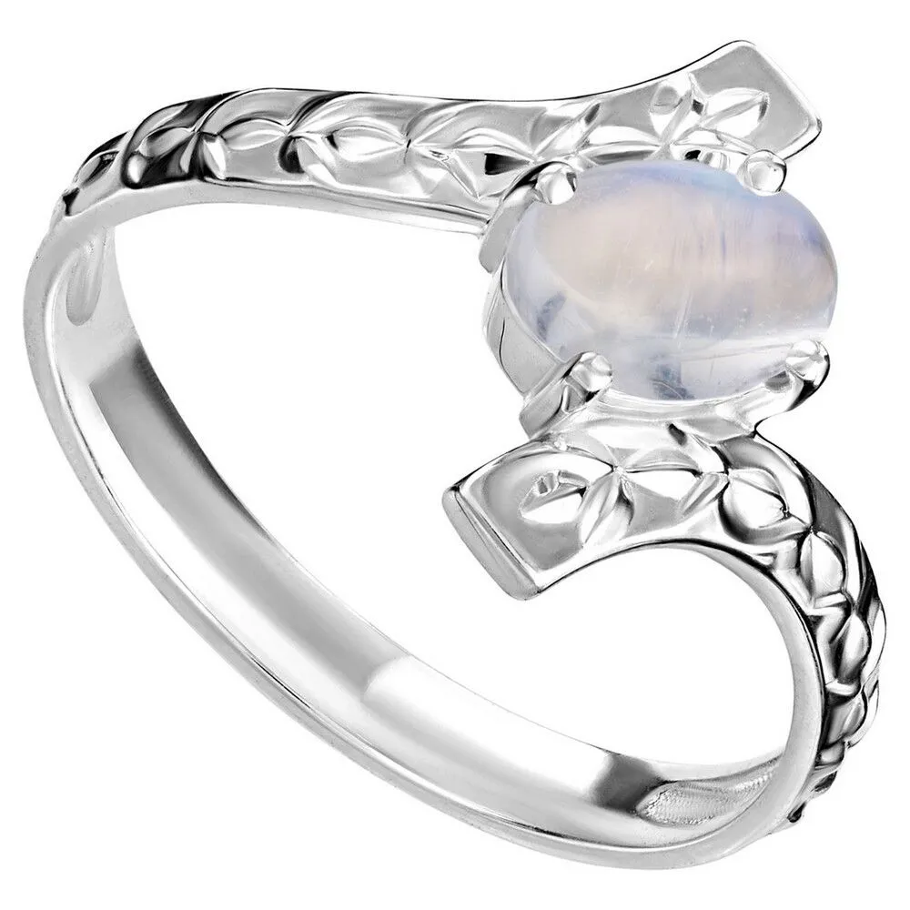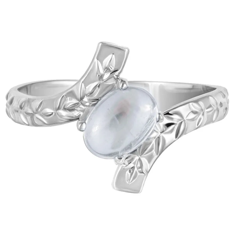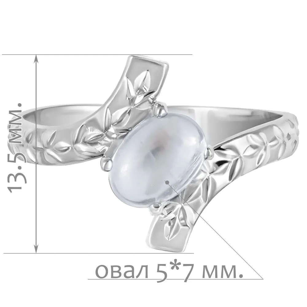 Серебряное кольцо с натуральным лунным камнем (каб.) - коллекция Тея / Белый Родий. Средний вес украшения с камнями 2.02 гр. Месторождение: Лунный камень (Мадагаскар). Ювелирные вставки: Лунный камень (Натуральный) овал 5*7 мм., средний вес: 0.76 карат. Все изделия собственного производства и имеют гарантию 12 месяцев, к каждому изделию прилагается паспорт. Арт. 8923WR