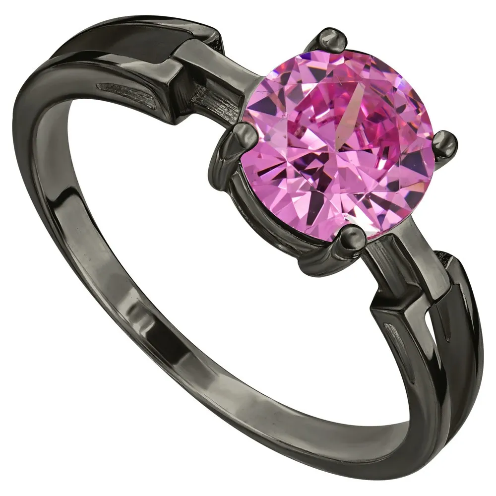 Серебряное кольцо с нанокристаллом, цвет розовый - коллекция Классик, покрытие Черный Родий.