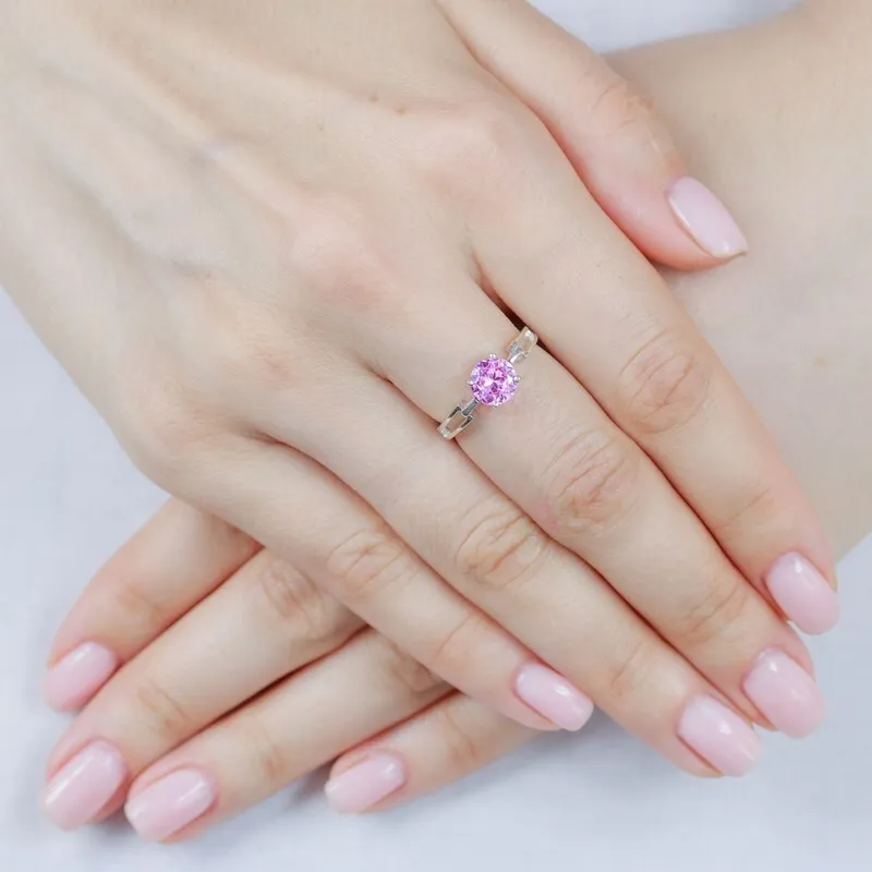 Серебряное кольцо с нанокристаллом, цвет розовый - коллекция Классик / Без покрытия