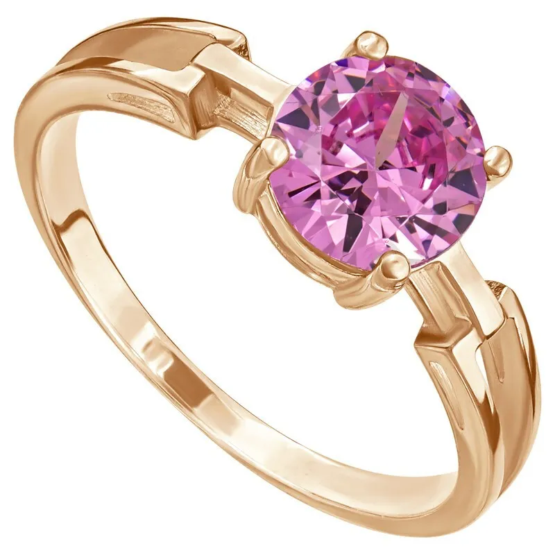 Серебряное кольцо с нанокристаллом, цвет розовый - коллекция Классик. Серебряное кольцо 925 пробы с покрытием розовое золото. Цвет покрытия соответствует швейцарскому цветовому стандарту NIHS -4N и цвету розового золота 585 в России. На последней фотографии мы разместили сравнительную фотографию 3 цвета золотого покрытия. Помимо предания золотого цвета Вашему изделию, тонкий слой золота защищает от окисления. Для более стойкого эффекта золочения и долговечности покрытия мы дополнительно наносим подслой палладия (Pd). Средний вес изделия с камнями 2.11 гр. Размер главного камня: круг 7 мм. Нанокристалл - синтезированный ювелирный нанокристалл, превосходящий по блеску, преломлению света, твердости, плотности простой фианит. Все изделия собственного производства, гарантия 12 месяцев. Арт. 8249