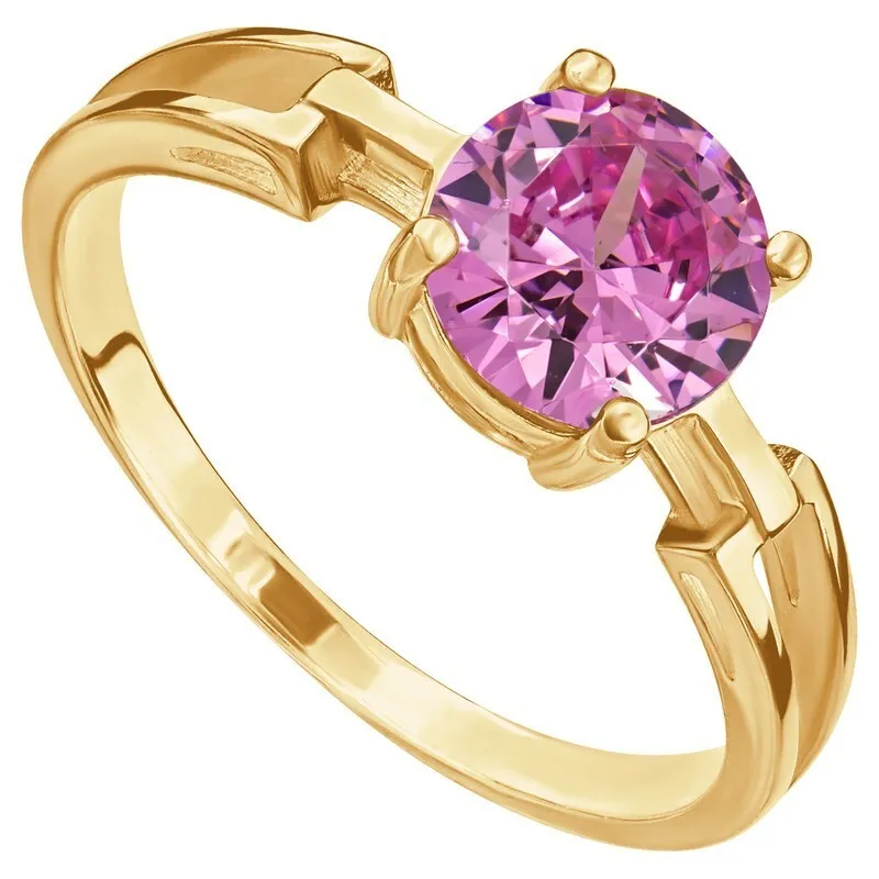 Серебряное кольцо с нанокристаллом, цвет розовый - коллекция Классик. Серебряное кольцо 925 пробы с покрытием желтое золото. Цвет покрытия соответствует швейцарскому цветовому стандарту NIHS -FF24ct и цвету чистого золото 999.99. На последней фотографии мы разместили сравнительную фотографию 3 цвета золотого покрытия. Помимо предания золотого цвета Вашему изделию, тонкий слой золота защищает от окисления. Для более стойкого эффекта золочения и долговечности покрытия мы дополнительно наносим подслой палладия (Pd). Средний вес изделия с камнями 2.11 гр. Размер главного камня: круг 7 мм. Нанокристалл - синтезированный ювелирный нанокристалл, превосходящий по блеску, преломлению света, твердости, плотности простой фианит. Все изделия собственного производства, гарантия 12 месяцев. Арт. 8249