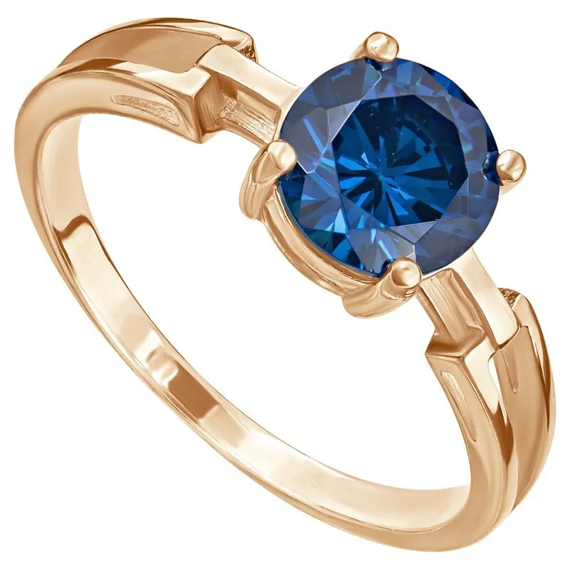Серебряное кольцо с нанокристаллом, цвет синий сапфир - коллекция Классик. Серебряное кольцо 925 пробы с покрытием розовое золото. Цвет покрытия соответствует швейцарскому цветовому стандарту NIHS -4N и цвету розового золота 585 в России. На последней фотографии мы разместили сравнительную фотографию 3 цвета золотого покрытия. Помимо предания золотого цвета Вашему изделию, тонкий слой золота защищает от окисления. Для более стойкого эффекта золочения и долговечности покрытия мы дополнительно наносим подслой палладия (Pd). Средний вес изделия с камнями 2.11 гр. Размер главного камня: круг 7 мм. Нанокристалл - синтезированный ювелирный нанокристалл, превосходящий по блеску, преломлению света, твердости, плотности простой фианит. Все изделия собственного производства, гарантия 12 месяцев. Арт. 8250