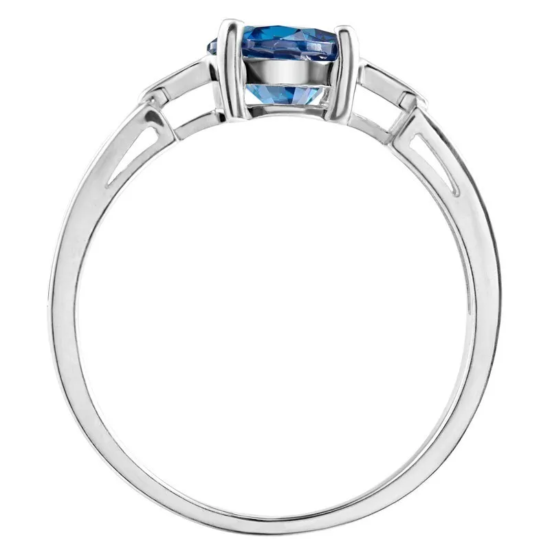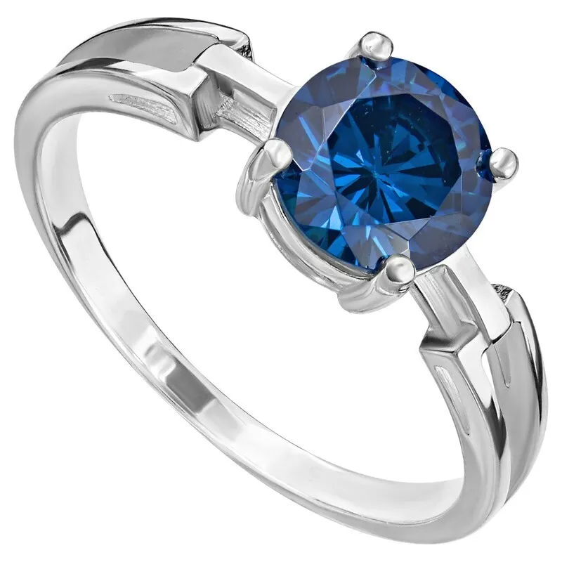 Серебряное кольцо с нанокристаллом, цвет синий сапфир - коллекция Классик / покрытие Белый Родий
