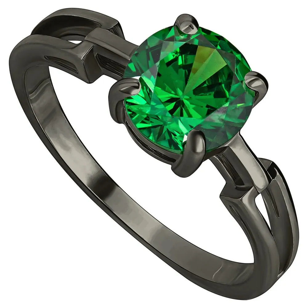 Серебряное кольцо с нанокристаллом, цвет зеленый изумруд - коллекция Классик, покрытие Черный Родий.