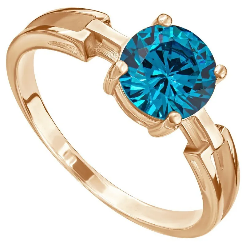Серебряное кольцо с нанокристаллом, цвет голубой топаз - коллекция Классик. Серебряное кольцо 925 пробы с покрытием розовое золото. Цвет покрытия соответствует швейцарскому цветовому стандарту NIHS -4N и цвету розового золота 585 в России. На последней фотографии мы разместили сравнительную фотографию 3 цвета золотого покрытия. Помимо предания золотого цвета Вашему изделию, тонкий слой золота защищает от окисления. Для более стойкого эффекта золочения и долговечности покрытия мы дополнительно наносим подслой палладия (Pd). Средний вес изделия с камнями 2.11 гр. Размер главного камня: круг 7 мм. Нанокристалл - синтезированный ювелирный нанокристалл, превосходящий по блеску, преломлению света, твердости, плотности простой фианит. Все изделия собственного производства, гарантия 12 месяцев. Арт. 8254